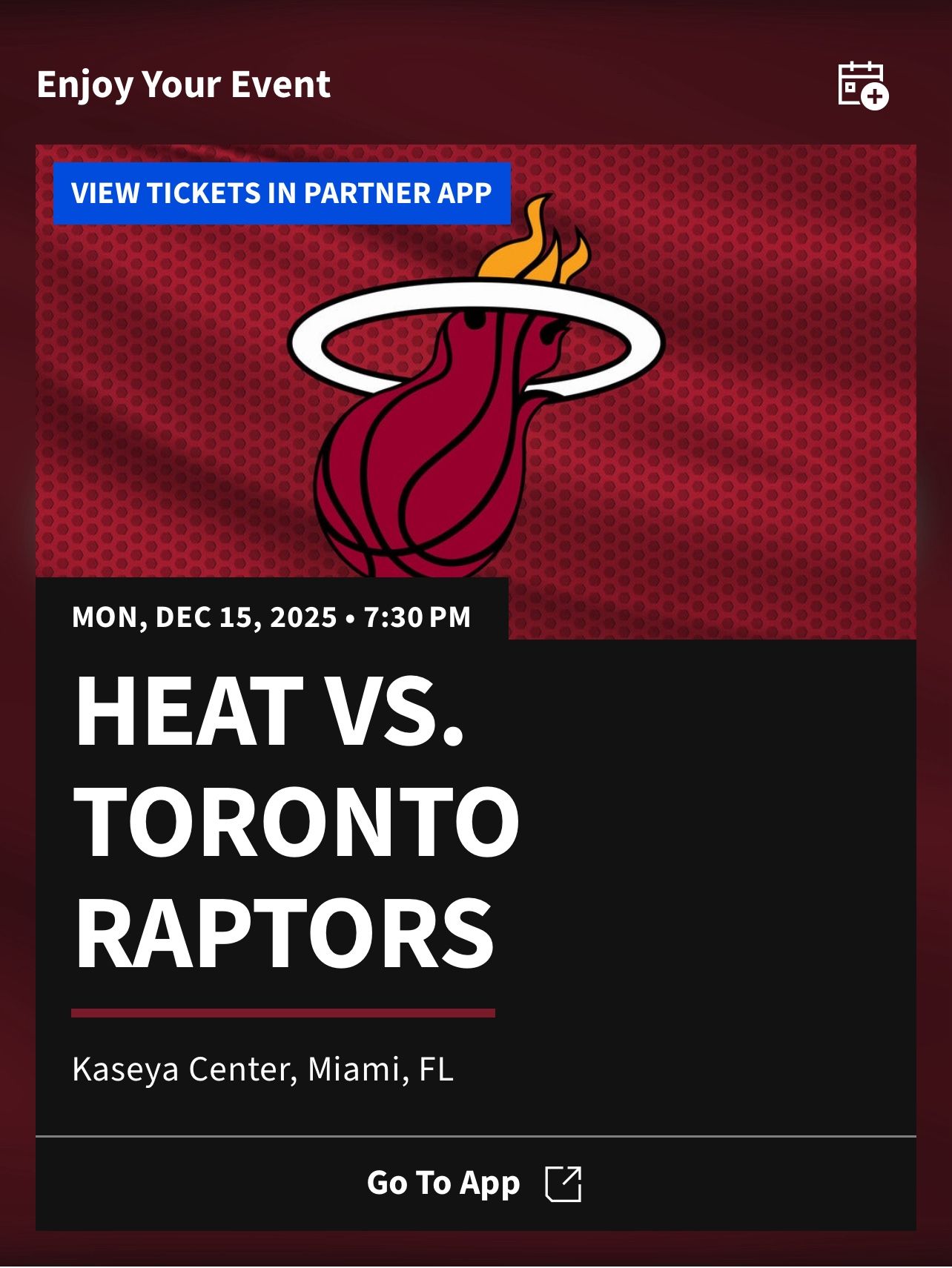 HEAT vs RAPTORS TONIGHT 3 TICKETS