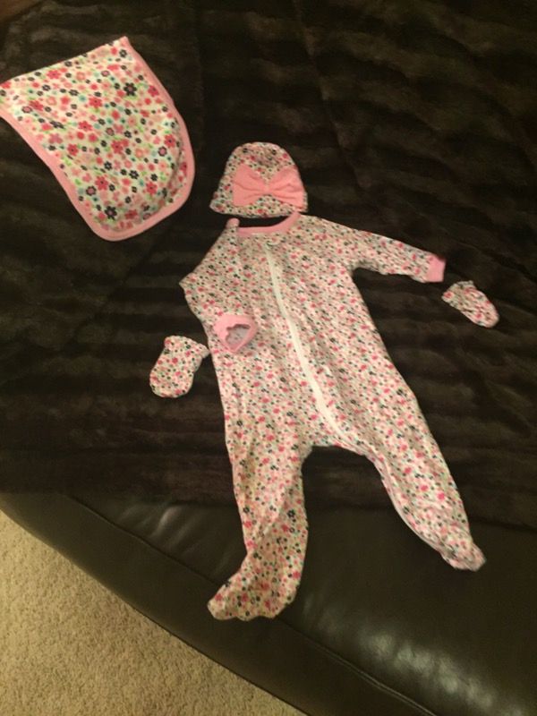 3-6 month sleeper with hat, mitts and bib