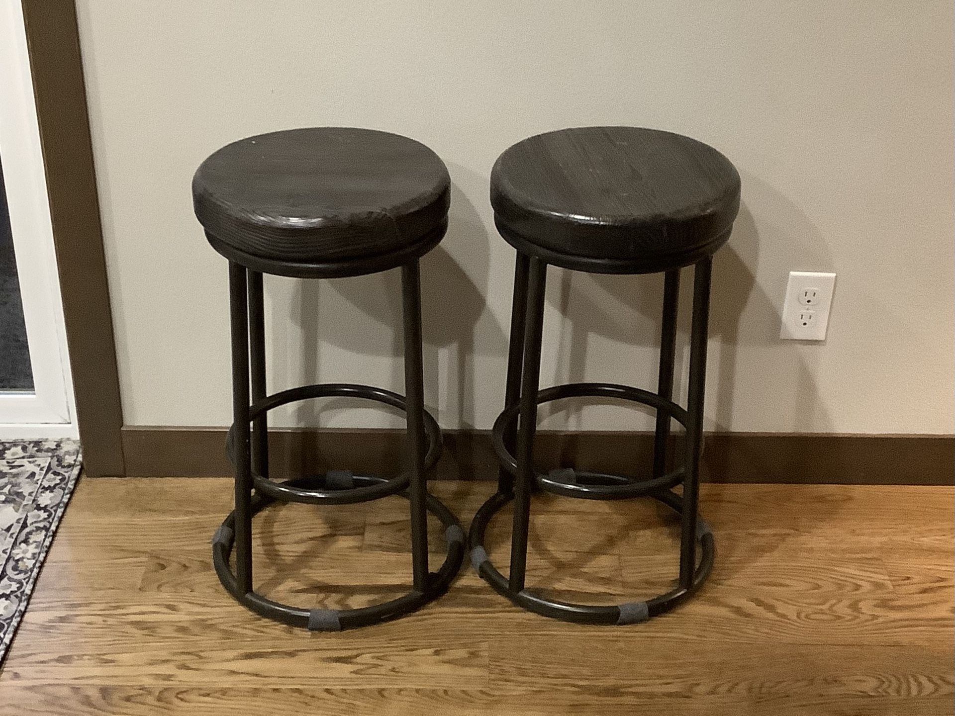 Unique, hard-to-find counter height stools. Very sturdy. Solid wood seat with metal legs. Stools are 24.25” tall. Seat is 13” in diameter. Two available for pick-up in the Marysville-Everett area. $50 for both. If the ad is up, they’re still available.