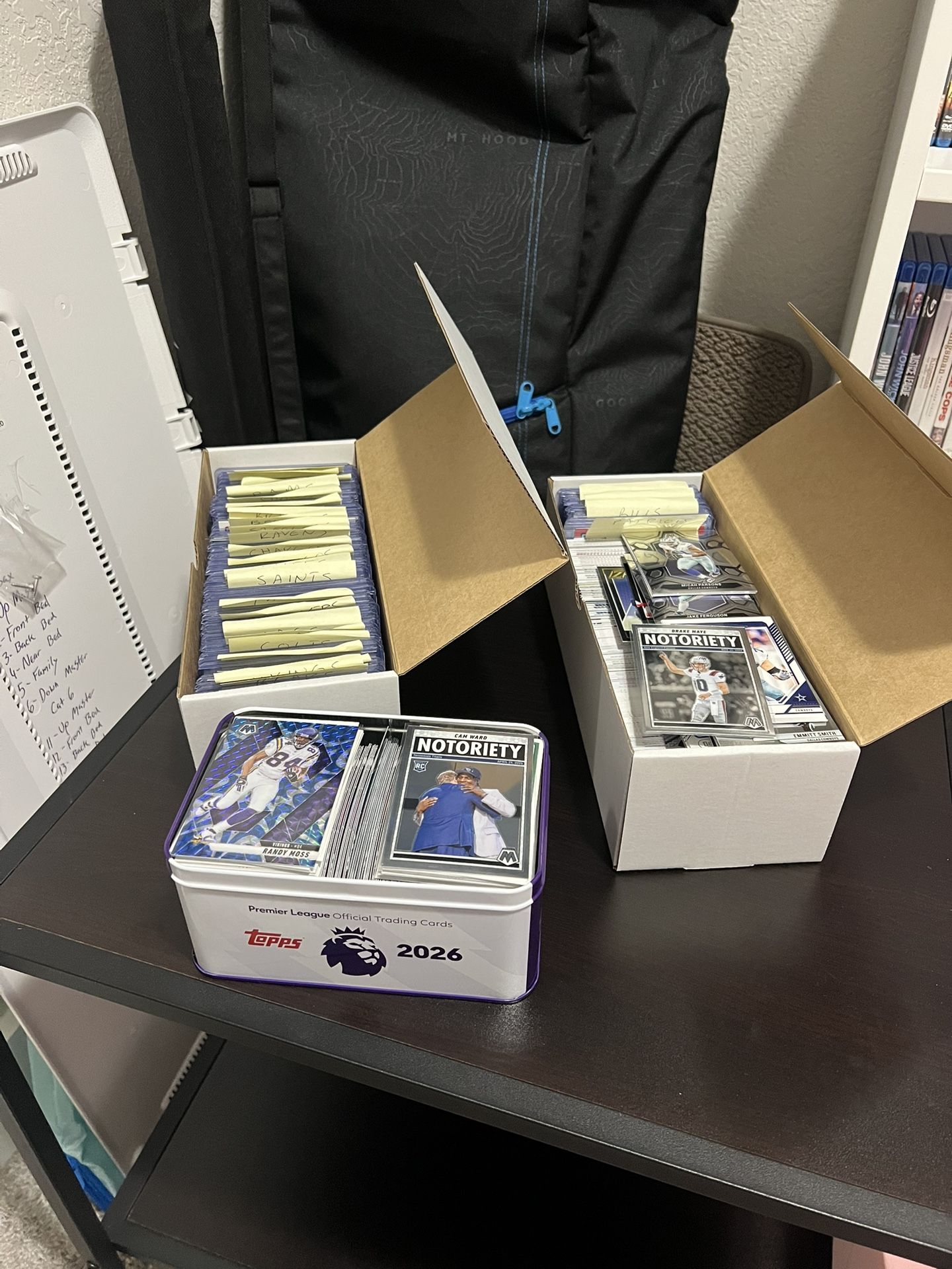 Selling entire collection of football cards. All teams except eagles. Mosaic, Donruss, zenith, absolute. 2024-2025 All cards freshly pulled and unique cards sleeved and top loaded Some numbered and lots of parallels of cards. **using tin as storage, all cards are football**