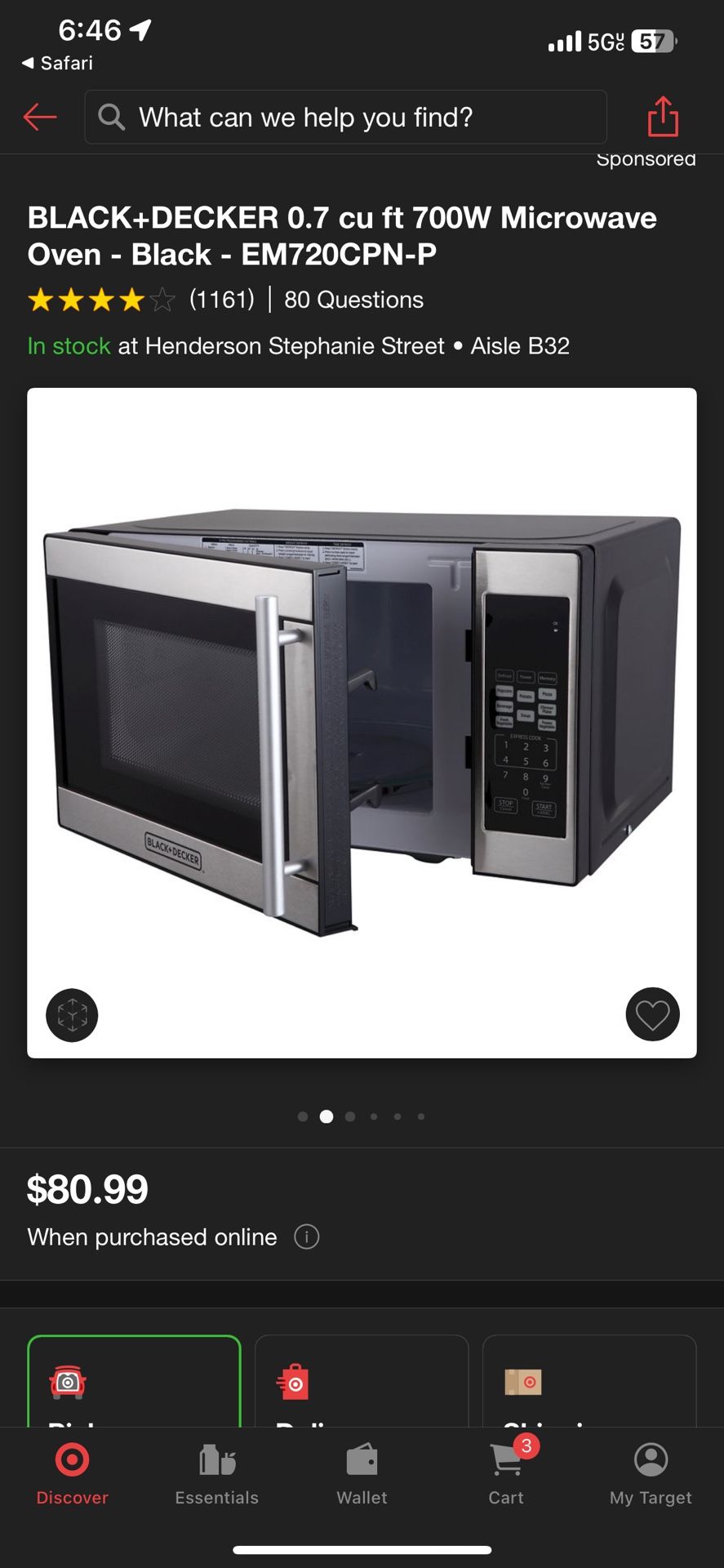 BLACK+DECKER 0.7 cu ft 700W Microwave Oven - Black