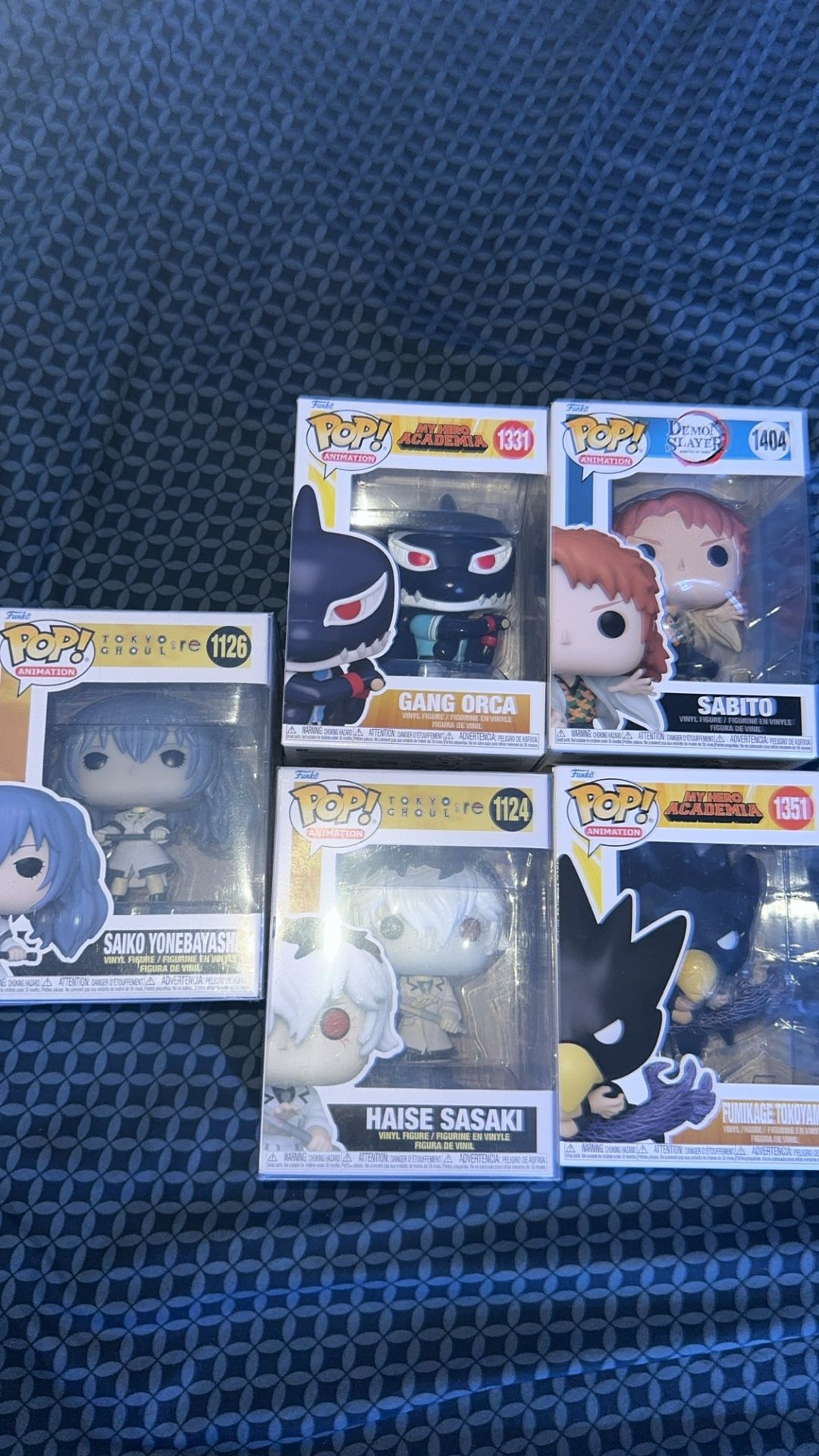 Anime Funko Pops asking $4 each or 3 for $10 or all 5 for $20