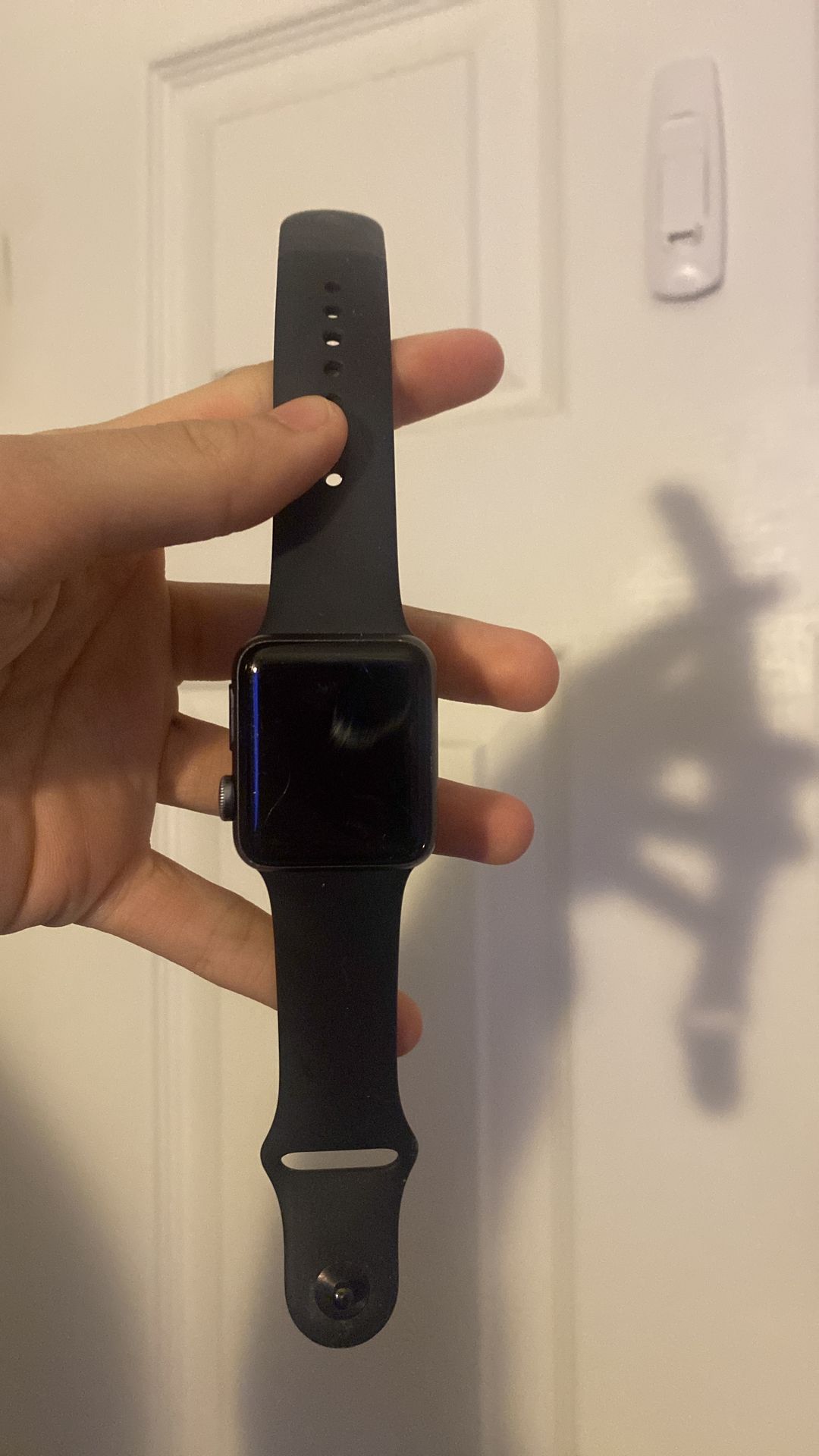 Series 3 with charger. Will be wiped of all data before purchase. Used, small crack in screen. No case comes with band and fully functional. CAN BE SOLD WITH AIRPODS FOR TOTAL $180