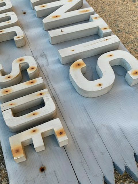 Atlantis Dockside Beach House sign with raised letters this sign is made of wood handmade it's 32 in wide 11 in tall 2 inches thick