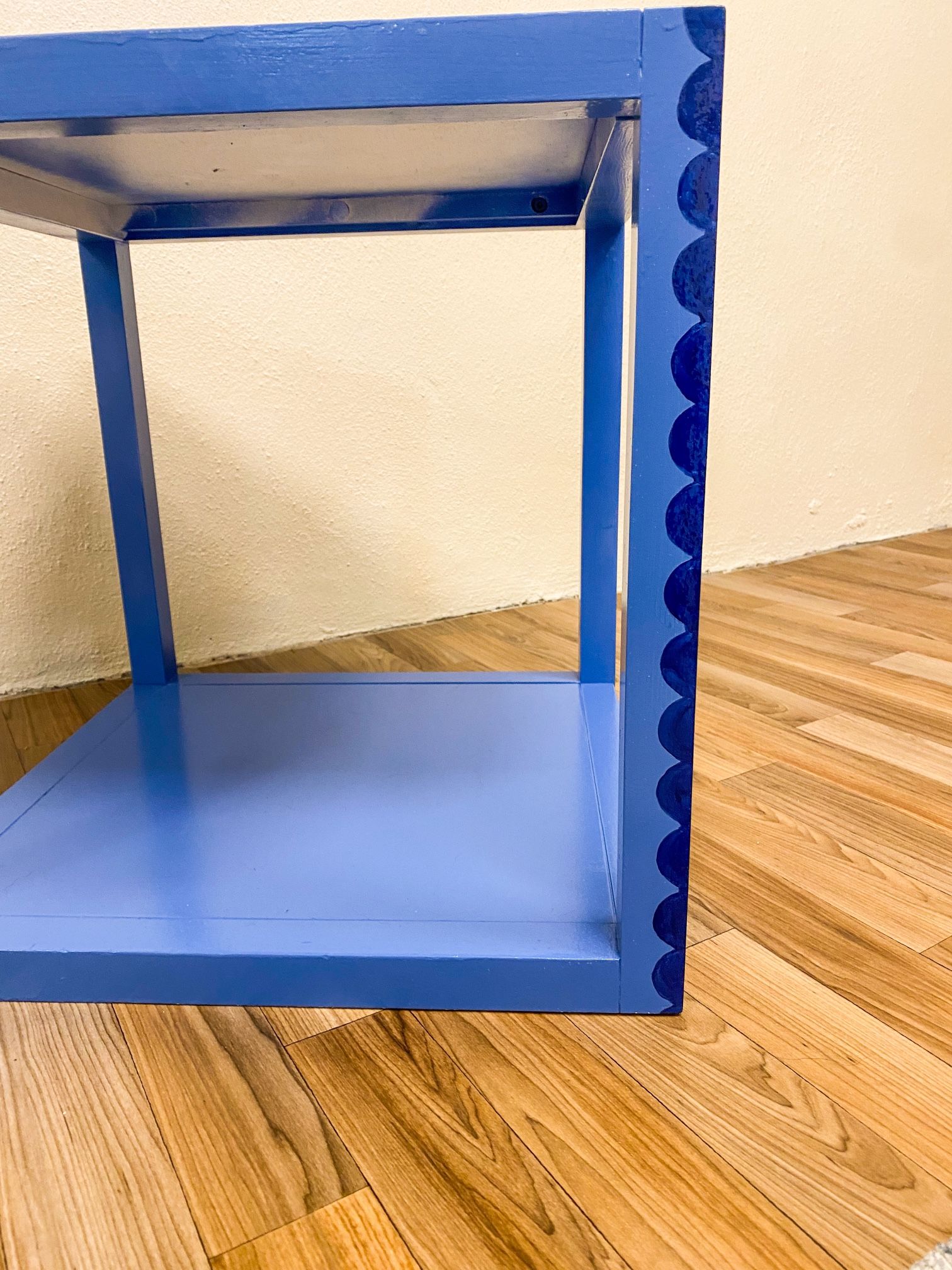 A fun and bright end table with a wavy scalloped border on all corners. So much fun! 18.5 in x 18 in x 18 in Pickup near Irving park Cash or Venmo is great