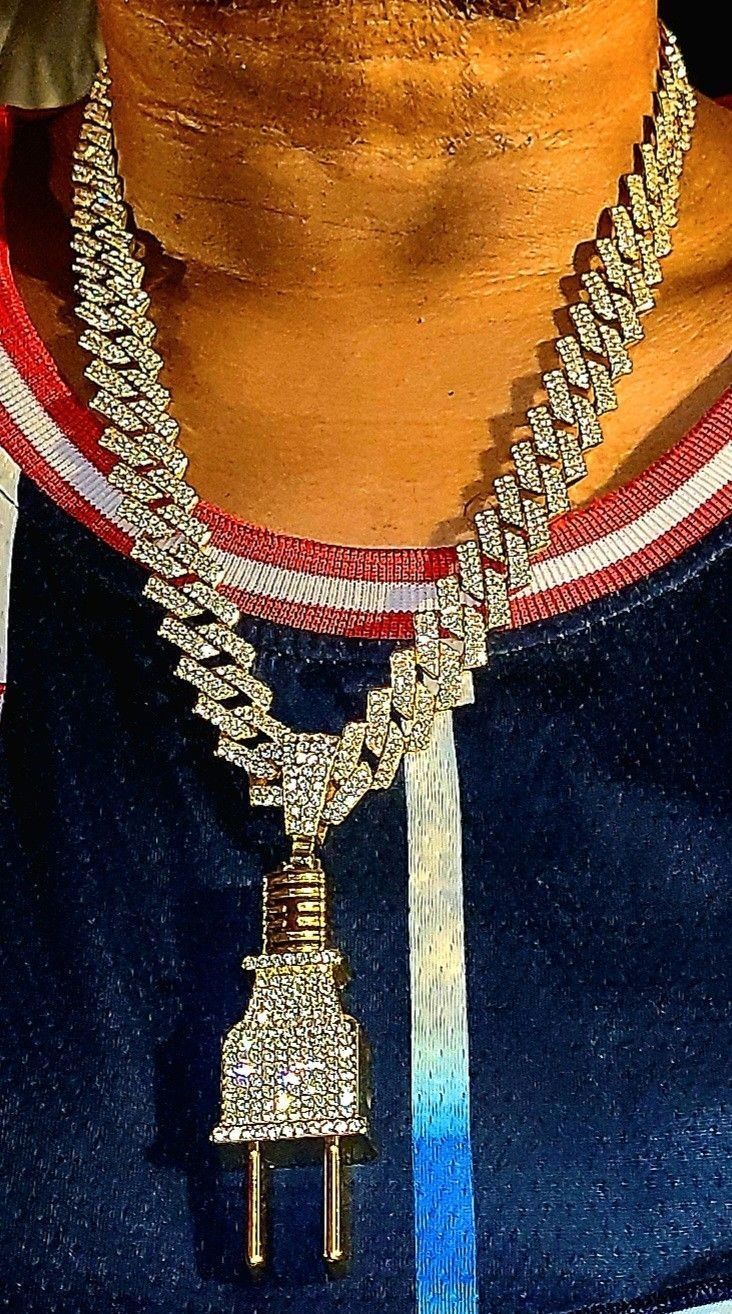 MENS ICED OUT PLUG PENDANT AND CHAIN