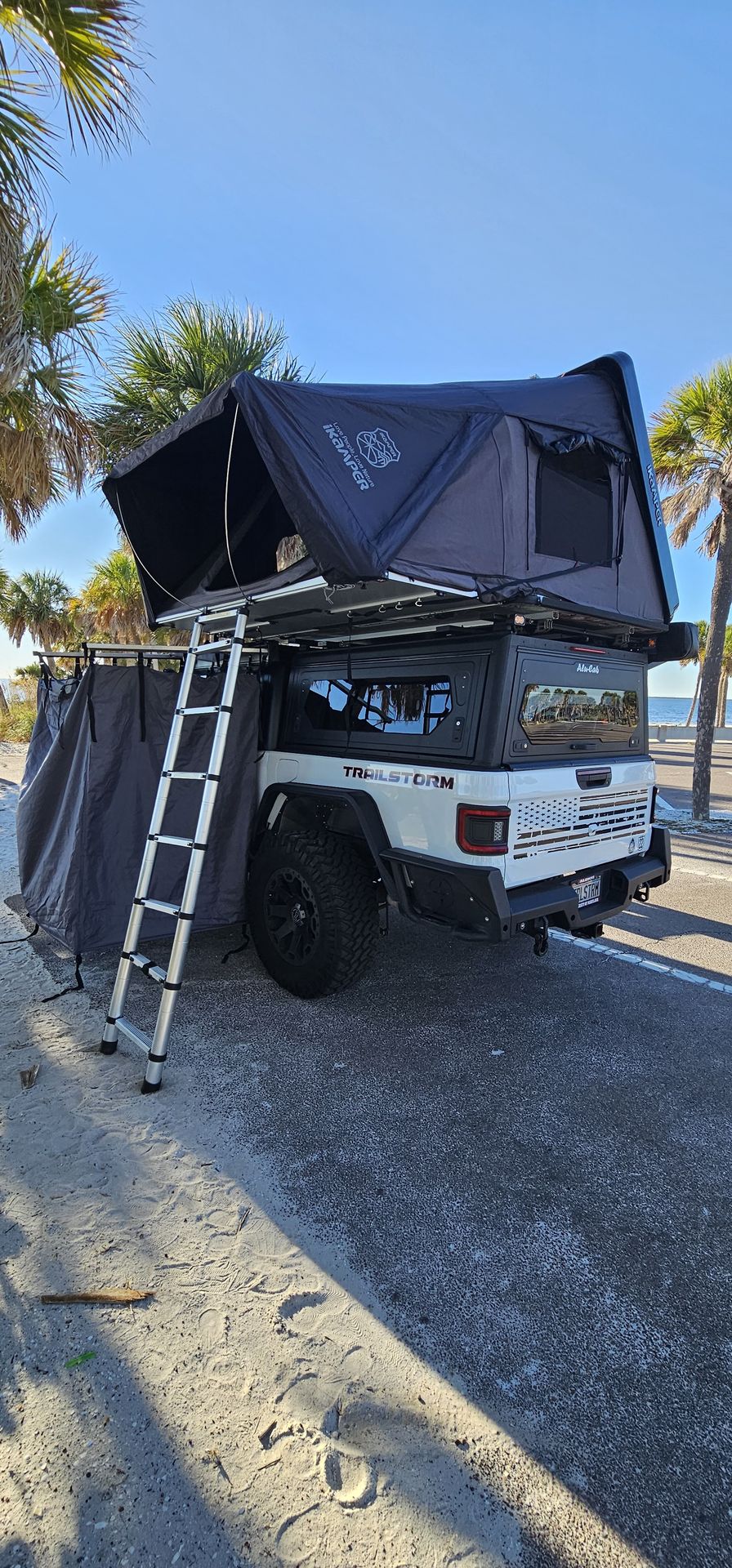 iKamper Skycamp 3.0 Rooftop Tent $2999 Retail $4000 Had it for about 2 yrs. Upgrading. No issues. No Mattress. 1 scratch. Also, selling an Alucab Countor cap w/windows ($4600) has the ammo box slide ($430) and 4 Front Runner Wolf Pack boxes for ($200) 2 rails 1450mm ($300) 2 feet rail mounts ($100) 2 chase lights ($70) 6 switch panel ($100) solar panel connection junction box ($50) for a Retail value of $5850 no tax. Selling for $4850. 15 gallon water tank ($350) electric water pump & quick release ($50). All for $299. Search for "ALUCAB Contour Cab, iKamper 3.0, OVS & More" on Marketplace. Also have a OVS 270 and shower. I will sell it all for $9k The Skycamp 3.0 redefines adventure with a king-size sleeping area, upgraded materials, and refined design. A quilted, insulated interior, 9-zone mattress, and blackout poly-cotton canvas keep you comfortable in any season, while the aerodynamic FRP hardshell provides durability and extra bedding storage. Designed with input from real adventurers, it’s the ultimate hard shell RTT for road trips, overlanding, and family camping