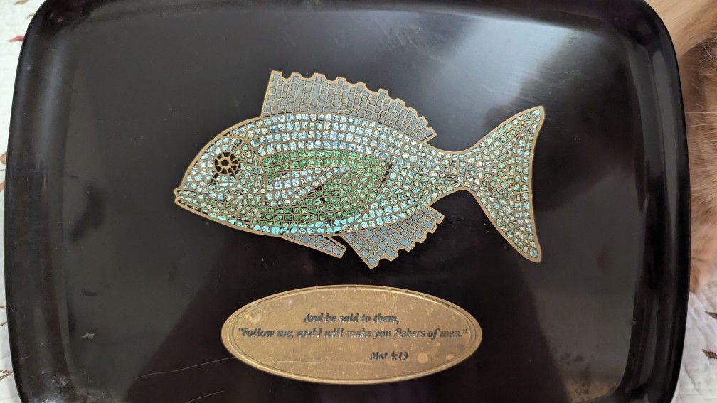 Couroc plate with mosaic fish See pictures for size