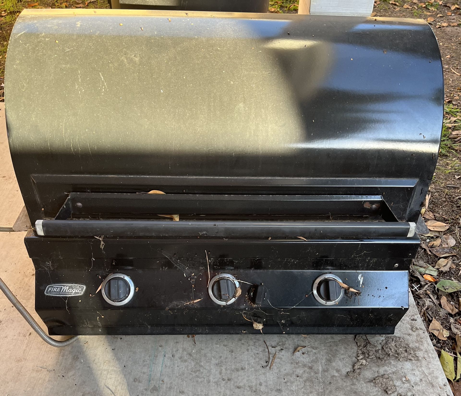 Used. Good condition Big outdoor BBQ with all pieces and parts.