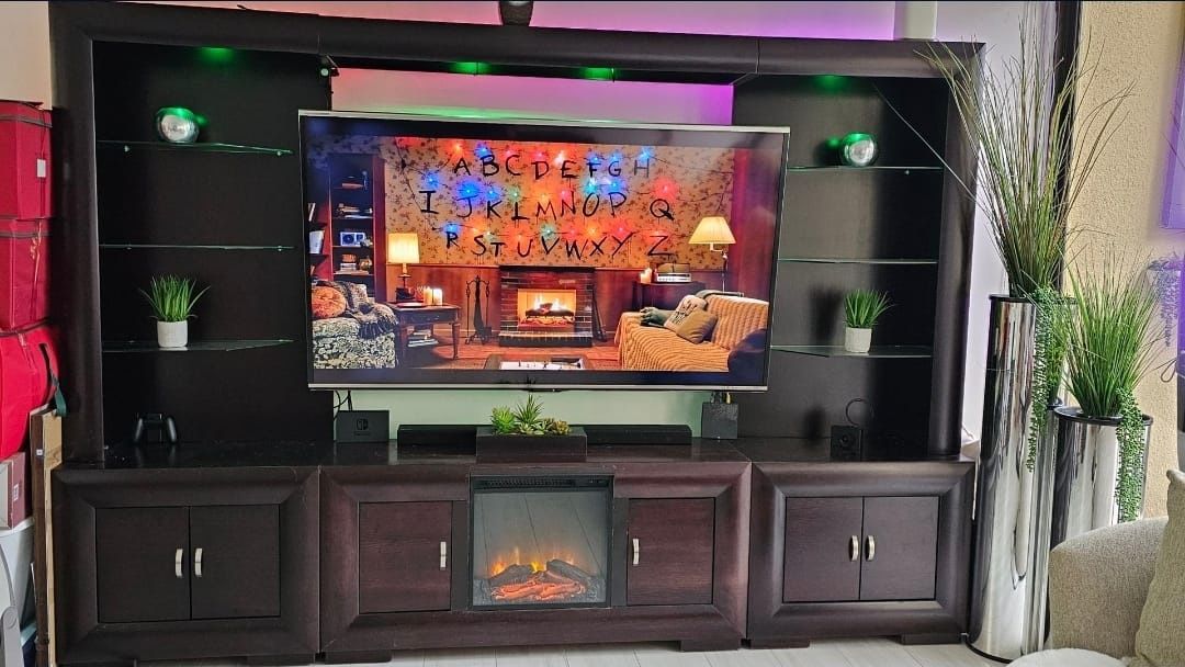 Muebles en leather, 2 mesas de sala y Mueble de televisor como nuevos