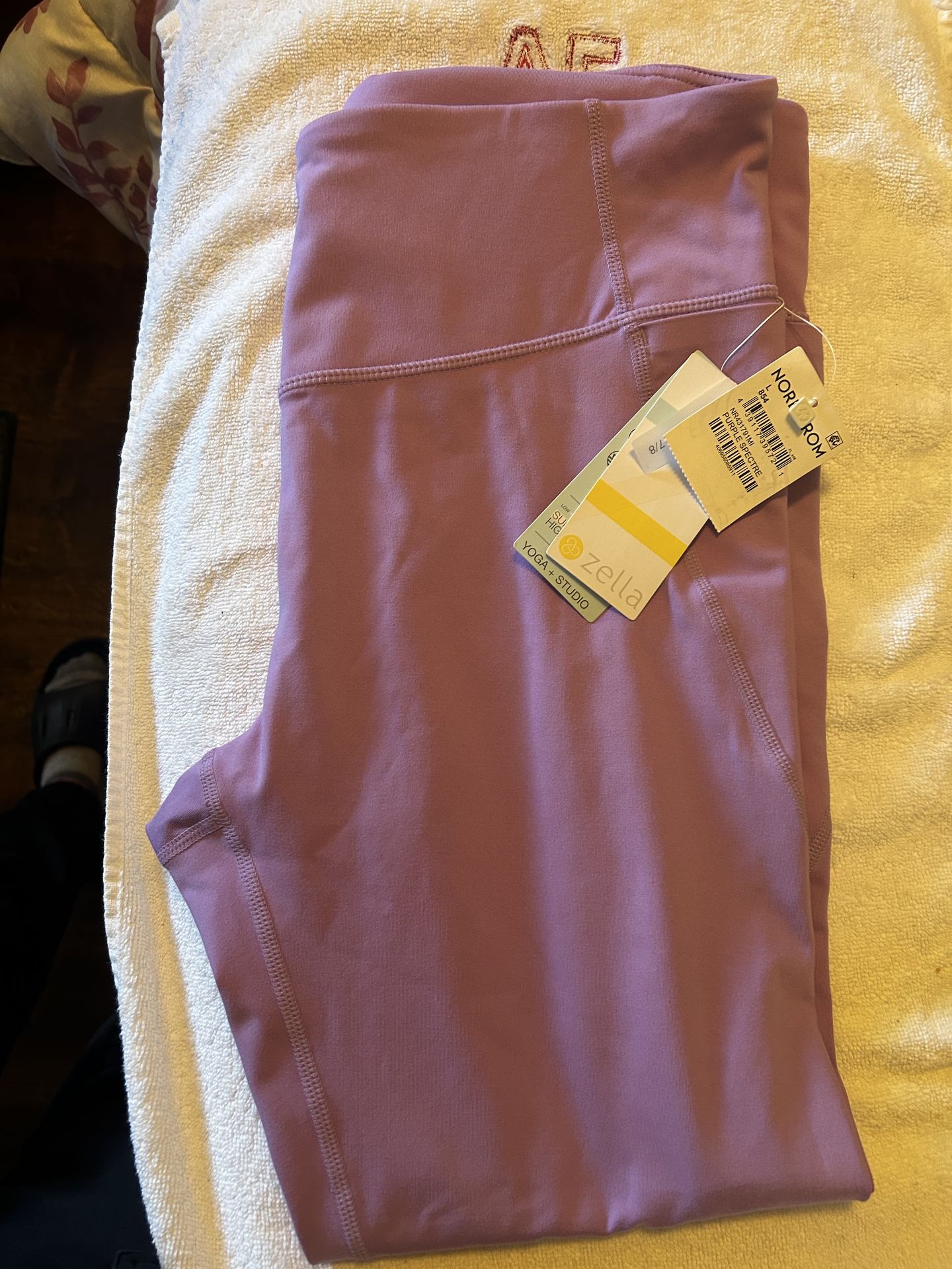 Zella leggings size large, high waisted 7/8” pink color. New with tags