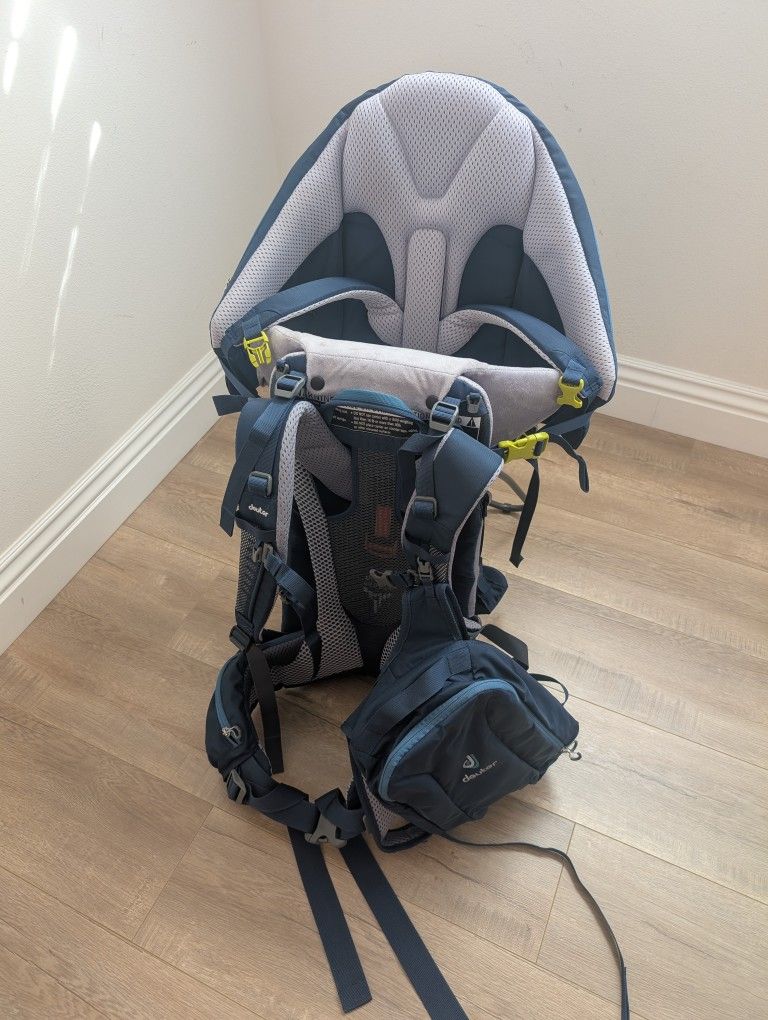 In like-new condition and only used twice before kids outgrew it. Comes with ample storage and a mirror so you can keep eyes on the young adventurer. The adjustable child seat with a 5-point safety harness ensures your little one rides securely and comfortably. With a detachable daypack, integrated sunshade, and multiple storage options, this carrier is ideal for extended family outings and multi-hour treks. Max weight: 53 lbs. New sells for $350. FEATURES Back system design enhances ventilation and load distribution for all-day comfort Detachable daypack, provides additional storage for essentials or can be used separately Adjustable child seat, with padded support and a secure 5-point safety harness Integrated sunshade, keeps your child protected from direct sunlight Side entry access, allows for easy placement and removal of your child Storage compartments, with multiple zippered and stretch pockets for snacks, water, and gear Padded hip belt, improves stability and load balance during long hikes