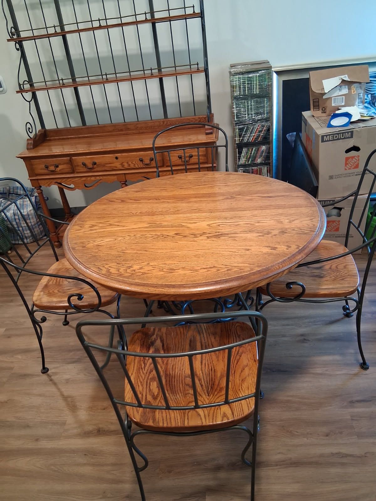 Table and 4 chairs in very good shape with bakers rake . Need gone . Starting to remodel. $ 450 or best offer . Will sale separately!!