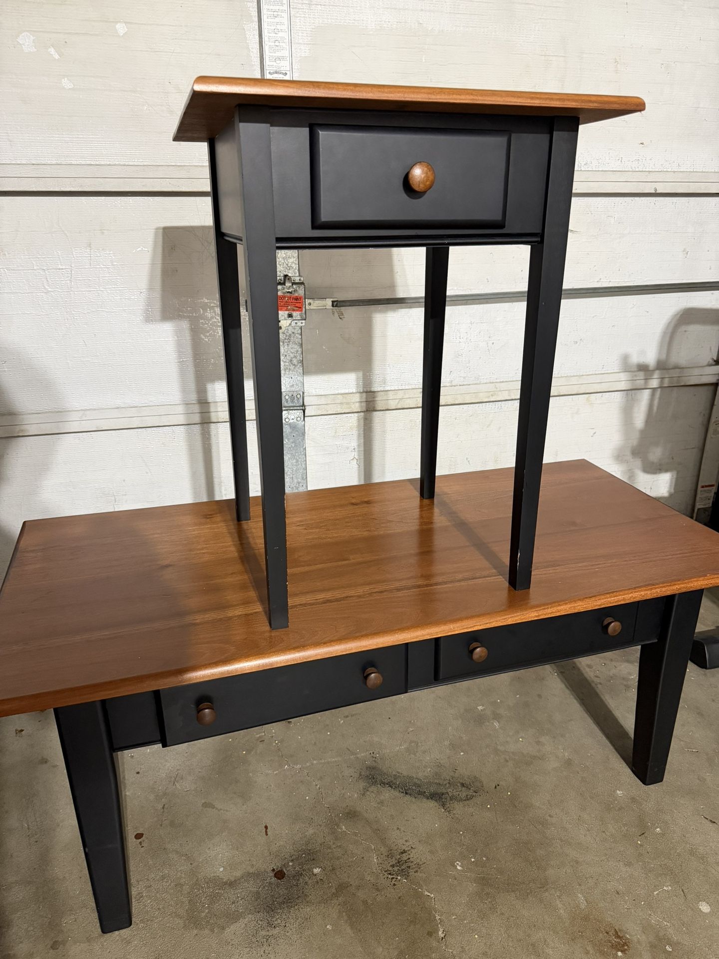 Coffee table with 2 drawers measures 48”L x 22” W x 19”H End Table one drawer measures 20”L x 20”W x 26”H