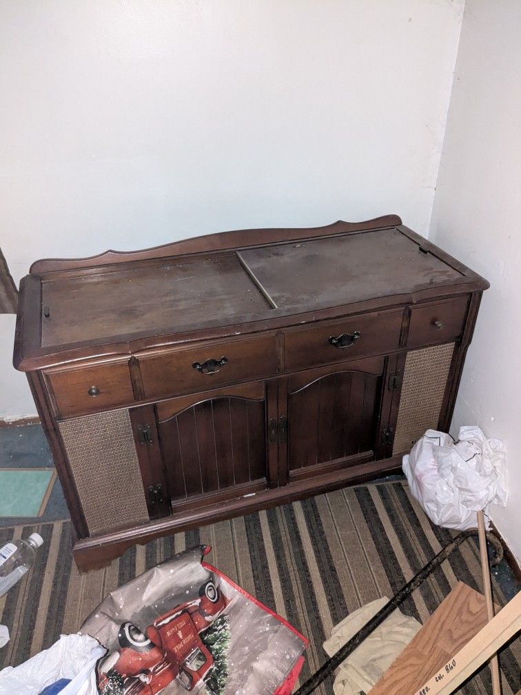 Old Antique Record Player And Chest All In One with the speakers built in too very old but nice in perfect condition PLEASE MAKE OFFER MUST GO HAVE TO MOVE NO ROOM FOR IT