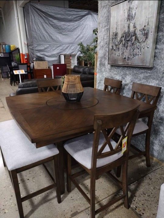 High top.6pc dining set with lazy Susan (New)