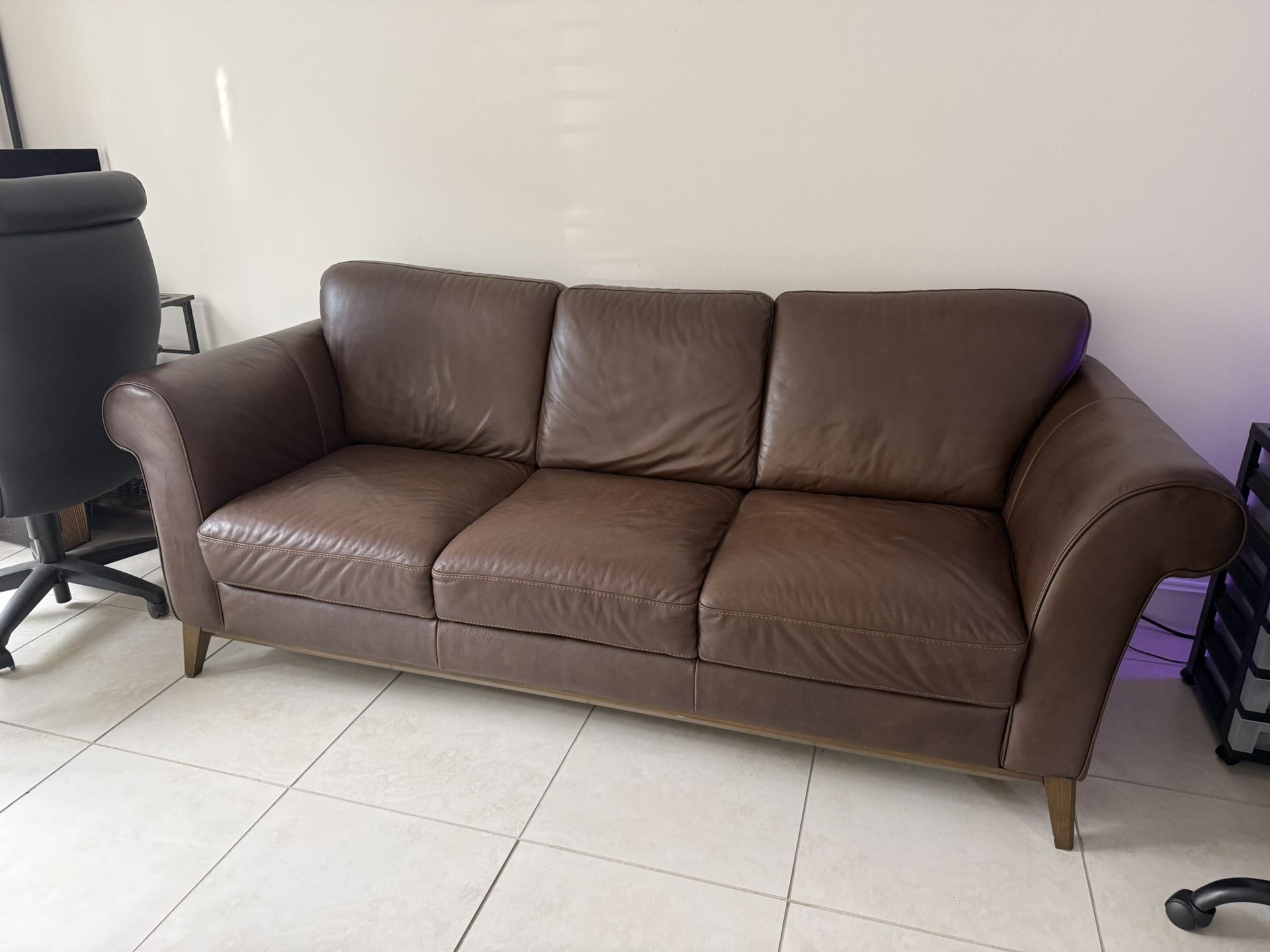 Great condition Brown Leather Couch! Measurements: 83 Length x 35 Width x 35 Length Buyer must pick up and transport!