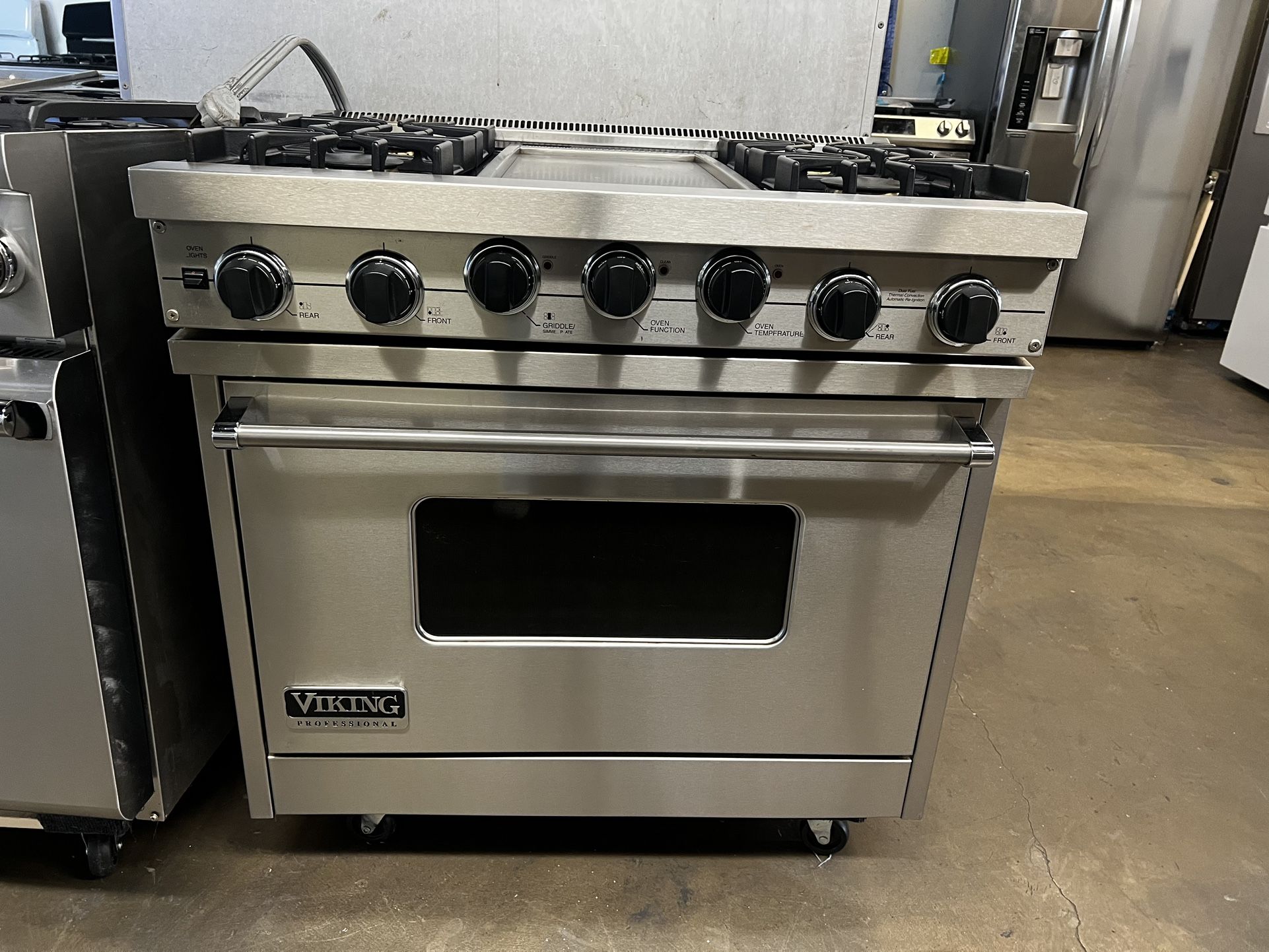 VIKING 36”WIDE DUAL FUEL RANGE STOVE STAINLESS STEEL WITH GRIDDLE