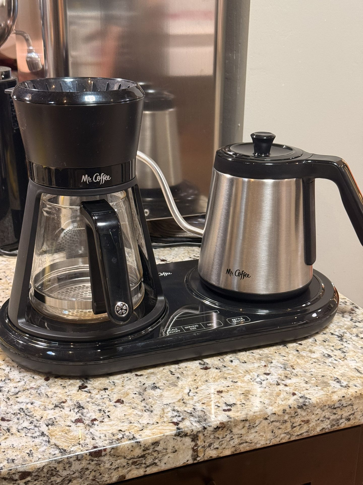 Gently used pour over coffee station by Mr Coffee. Was used occasionally in a guest house setting. Everything works perfectly. A fresh 100 pack of coffee filters included to get you started. Printed instruction manual included. Make pour over coffee at home with ease! The on screen, step by step guide walks you through the process, so you get the right amount of coffee, water at the perfect brewing temp, and an integrated scale with a timer let you know just how much water to pour. The V60 pour over style brewer allows water to flow evenly through the coffee grounds. An on screen guide even tells you when to pause for blooming. Brews 2, 4, or 6 cups of coffee, set includes dripper, kettle, glass carafe and scale. Enjoy home pour over coffee without the guesswork. Easy pickup in Phoenix near Camelback and Central.