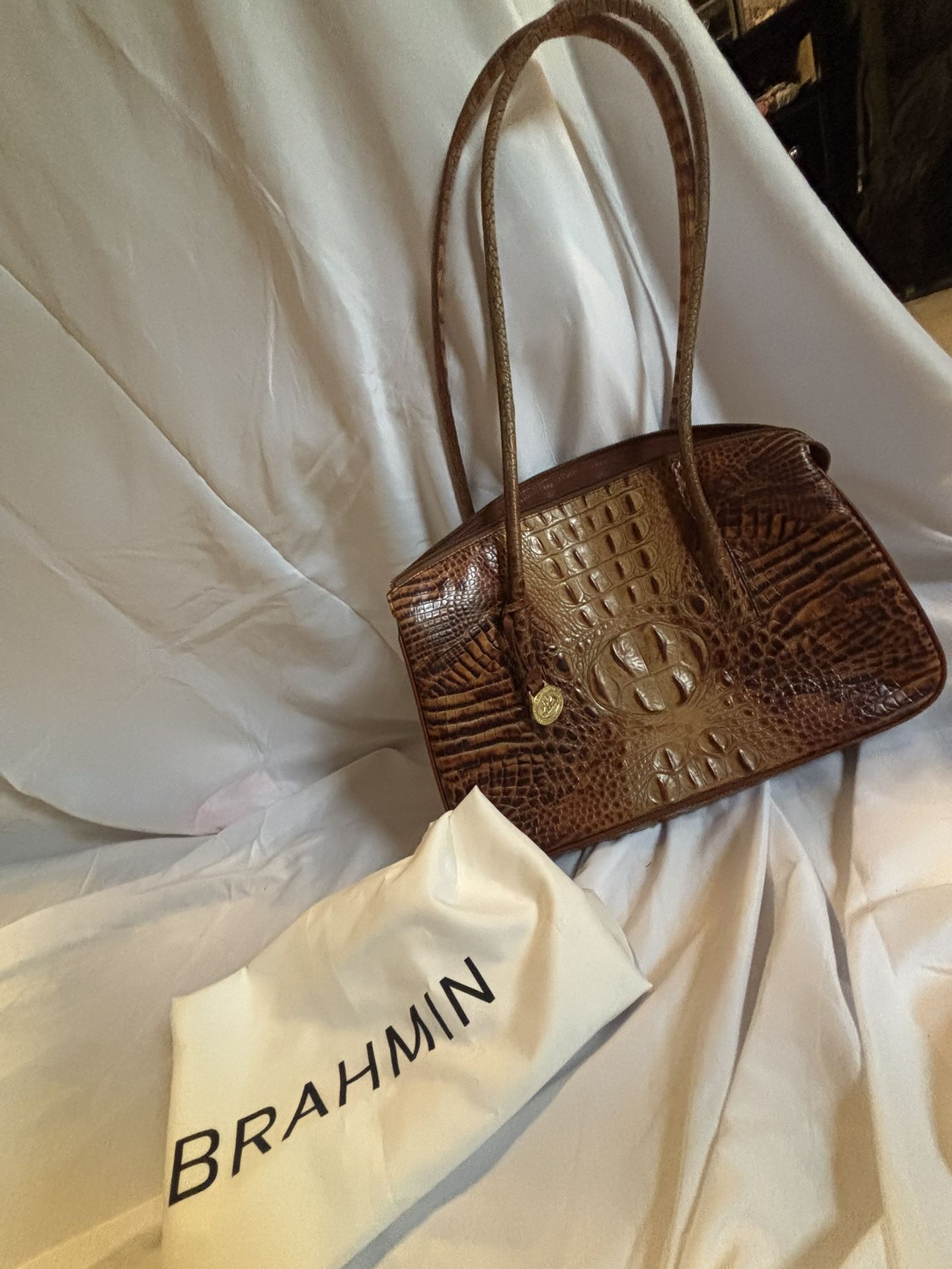 Authentic Brahmin shoulder bag with protective bag covering. Like new