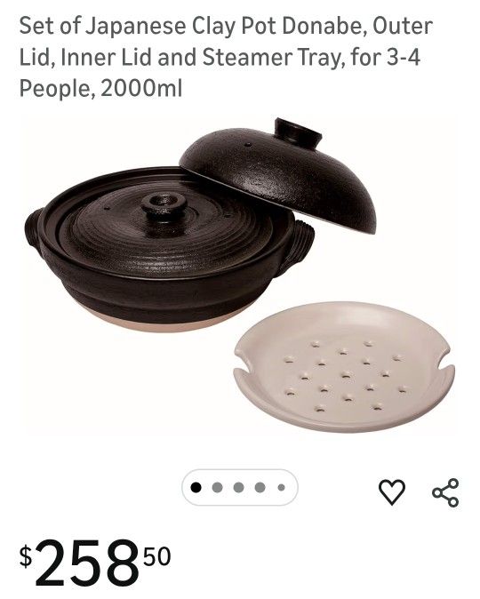 Set of Japanese Clay Pot Donabe, Outer Lid and Steamer...