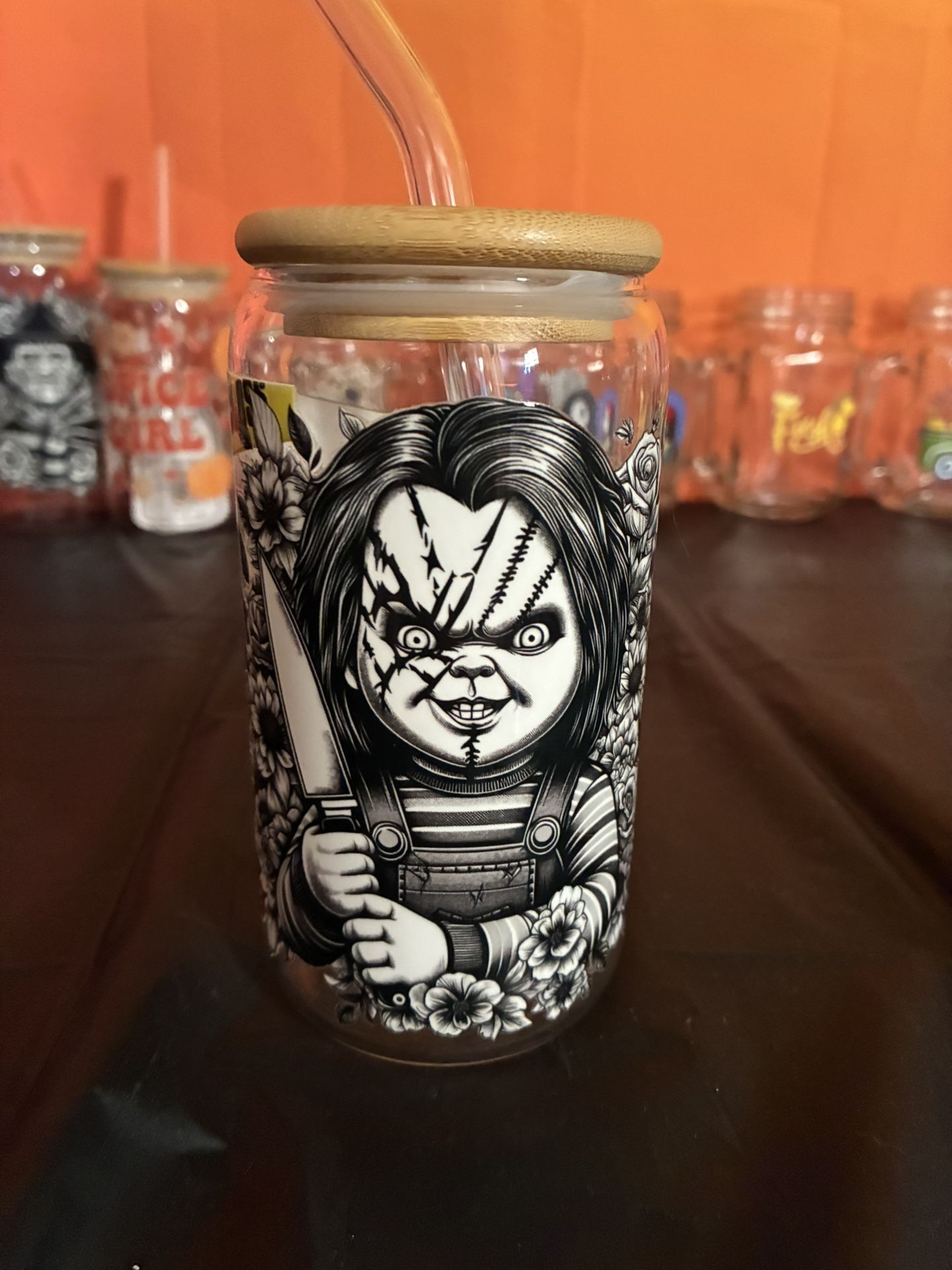 Chucky Glass Cup With Straw