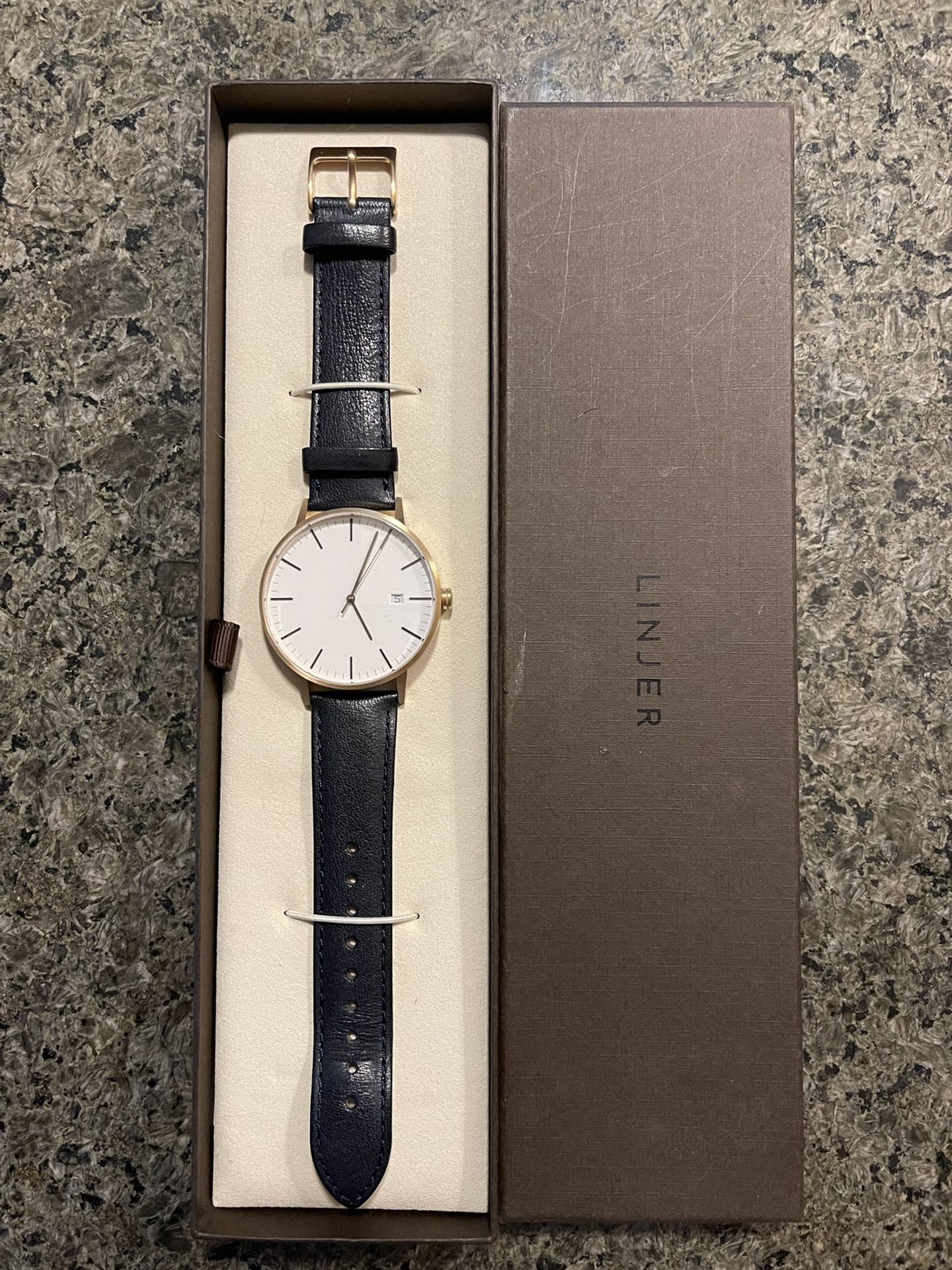 https://offerup.co/faYXKzQFnY?$deeplink_path=/redirect/ Lightly used. 41mm Rose Gold/white face. Navy leather band.