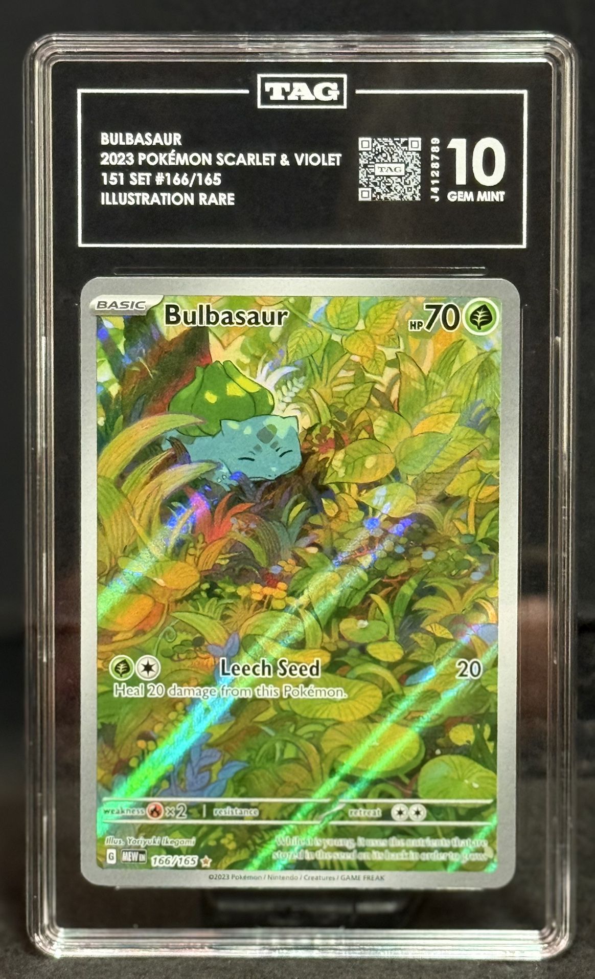 TAG 10 Bulbasaur 166/165 Illustration Rare Sv: Scarlet & Violet 151 Set Holo Cert # J(contact info removed)