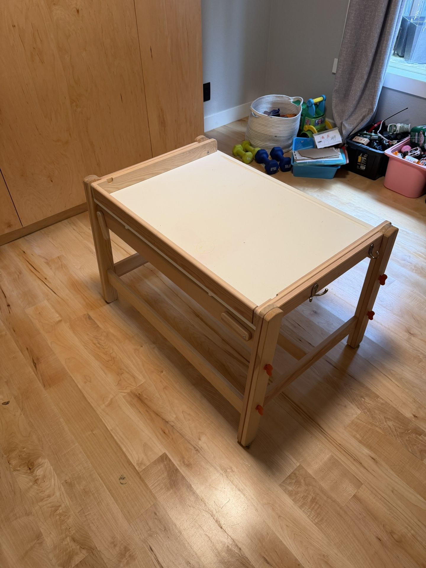 IKEA FLISAT desk, sells new for $100. We are asking $25. For assembly see https://offerup.co/faYXKzQFnY?$deeplink_path=/redirect/