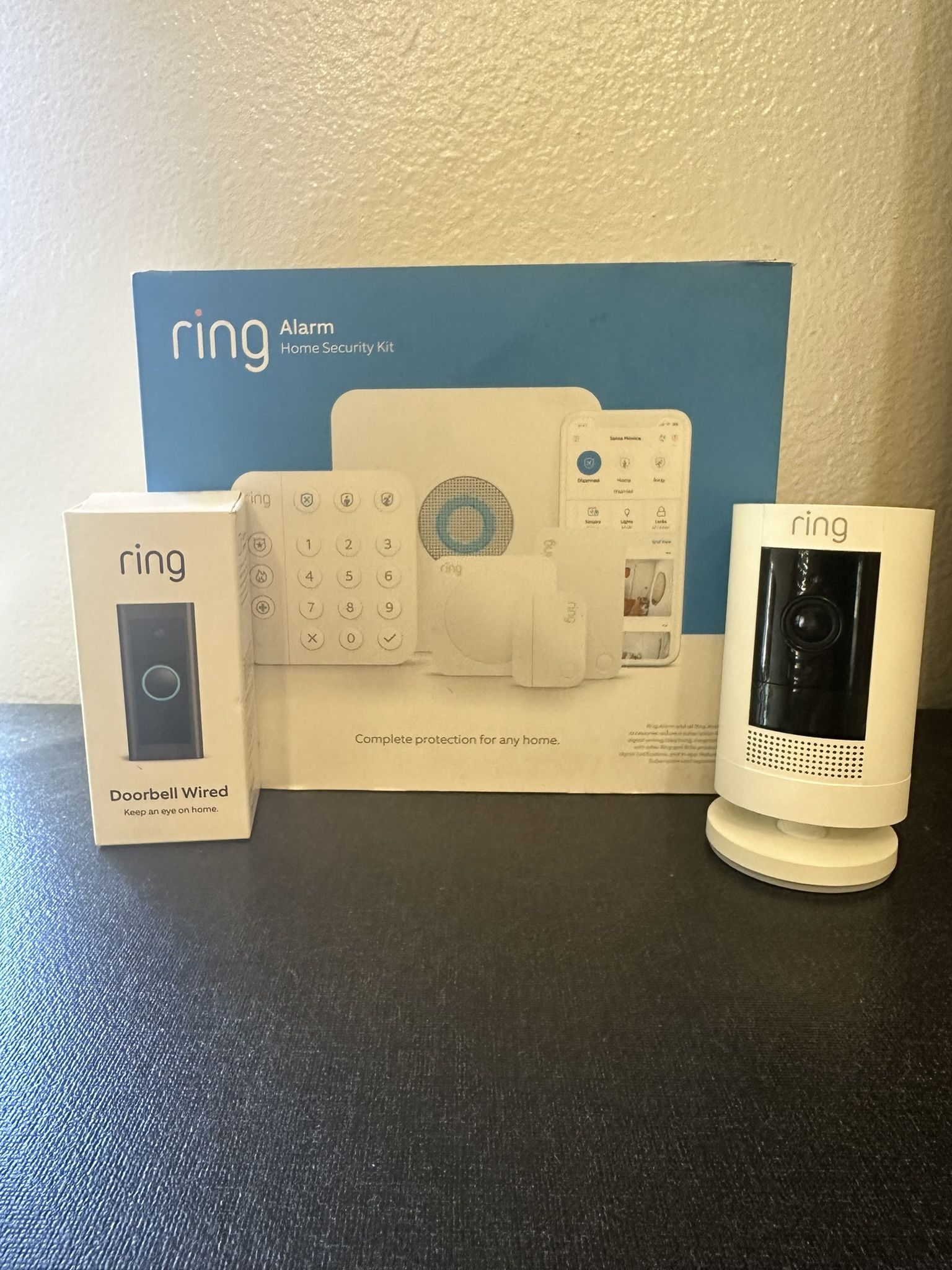 I purchased this bundle on Amazon. It is all brand new in the box except for the indoor camera which did use for a while. In brand new condition. The security system and ring door bell is brand new in box. Asking $195