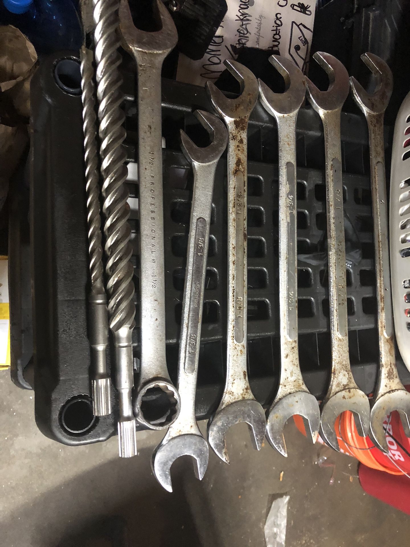 Lil bit of rust but in great condition extra large heavy duty wrenches and drill bits Bits are new see pics for sizes Priced to sell