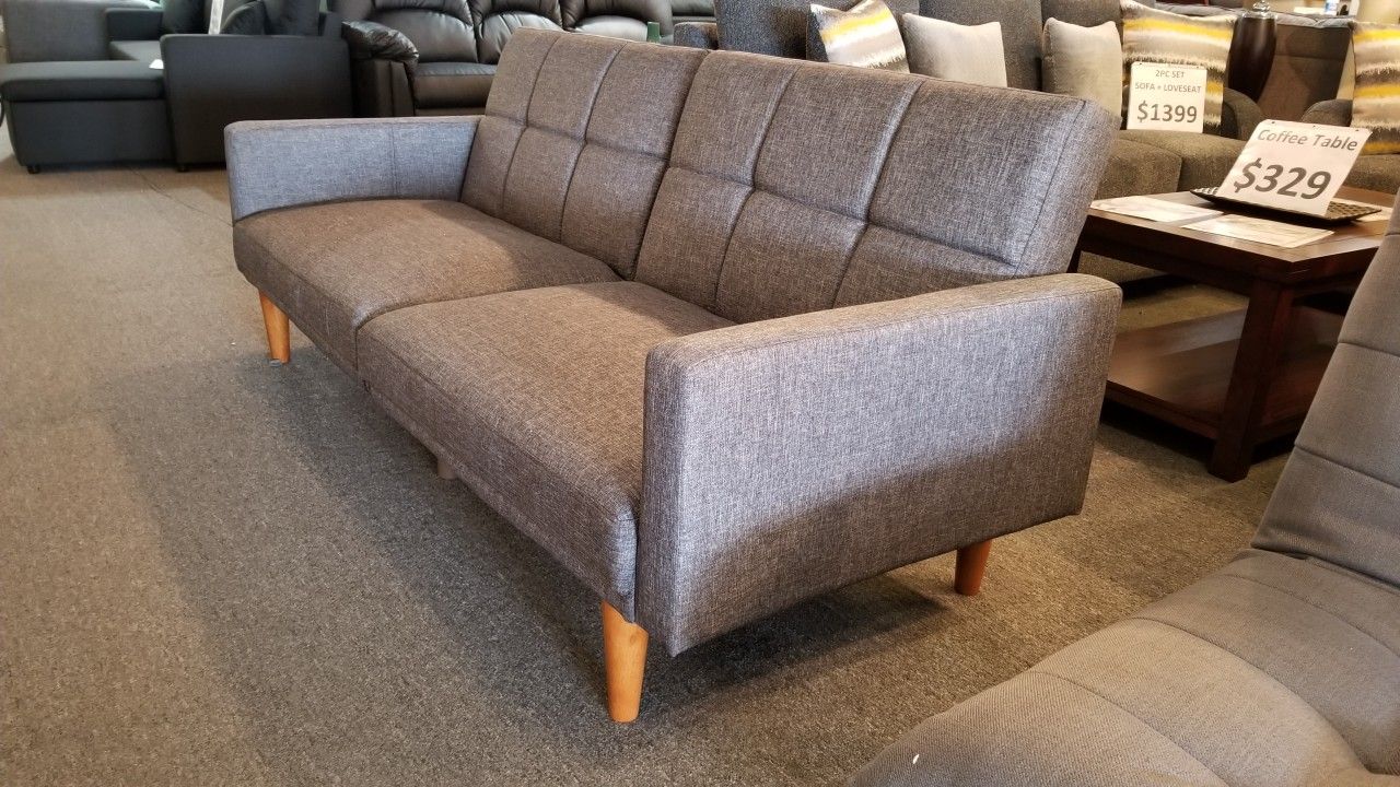 Brand New 75" x 44" Gray Linen Sofa Futon