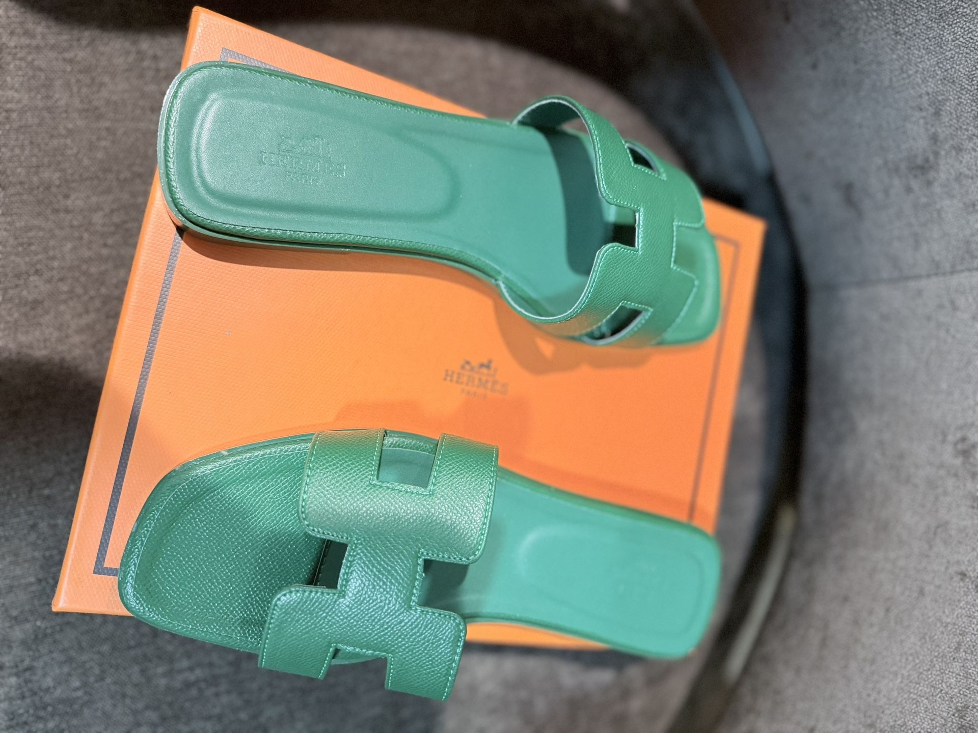 Hermes Green Joey Epsom Oran Leather Sandals Size 40