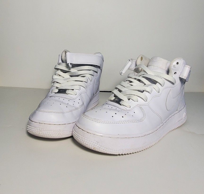 Pre-Loved Nike White Men’s Air Force 1 Mid '07 CW2289-111 Size 8.5 Brand: Nike Color: White Size: 8.5 US CW2289-111 Does not come with box The Soles has some marking please see pictures There are scuff marks on shoe lace ankle holes both shoes Shoe is clean little creasing on the fronts Please see pictures for imperfections Good Condition