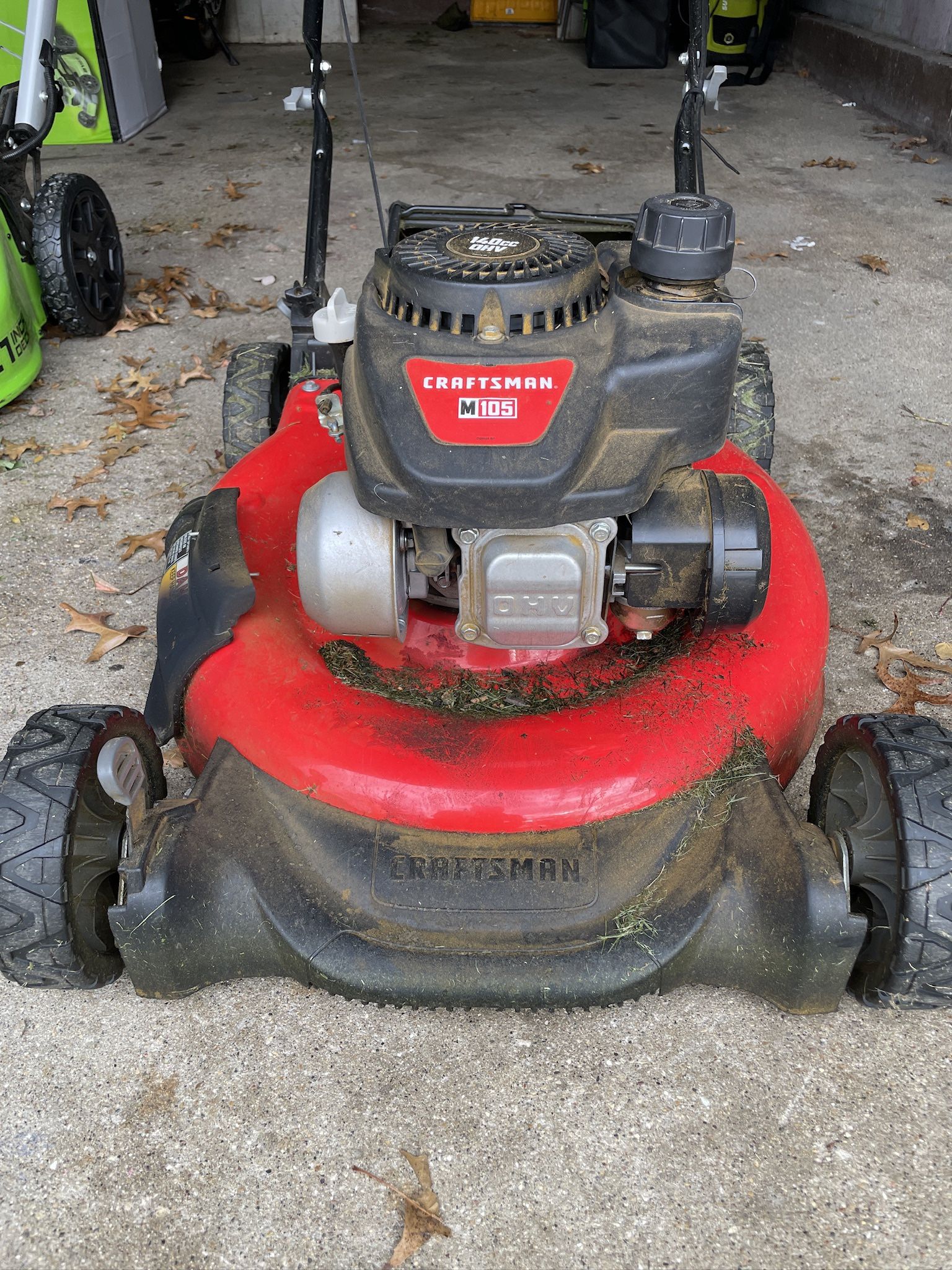 Craftsman M105 140CC gas powered mower. Had it for a few years and got an electric one. Need to get rid of this one. Needs an oil change but will start. Comes with leaf catcher PICK UP ONLY. LOMBARD