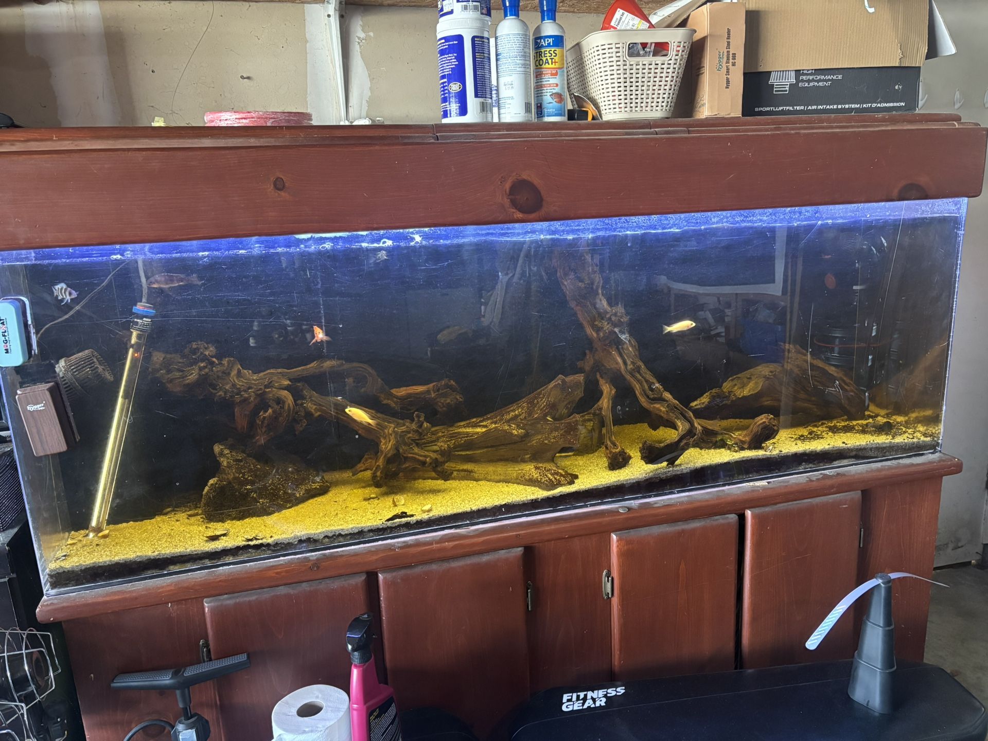 Approx. 125-130 acrylic fish tank. Comes with Fluval Fx-6 canister filter, tank stand, canopy, Drift wood, heater, lights. It has no leaks. Extremely well made, you will need a van or pickup truck to haul it away. I’m happy to help you load it. **fish not included. Asking for $700 obo.