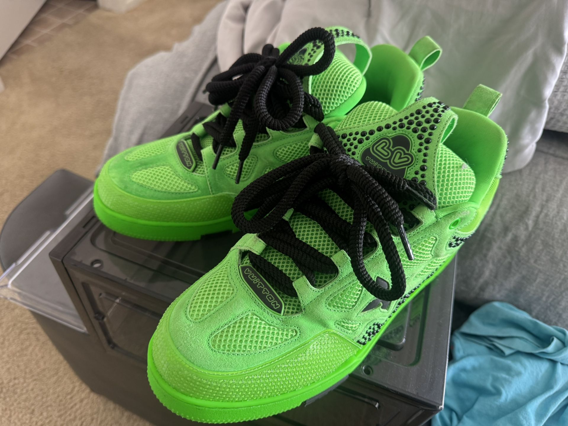 This elevated edition of the LV Skate sneaker leather richly embellished with sparkling crystals. They highlight the elaborately constructed upper with its padded collar and exaggerated tongue BQ9U1PSC45N110 LV SKATE SNEAKER 1ACEHR 1 Price: 2,705.65 COLOR: VERT SIZE: 110 WIDTH: Normal CA : JT0R