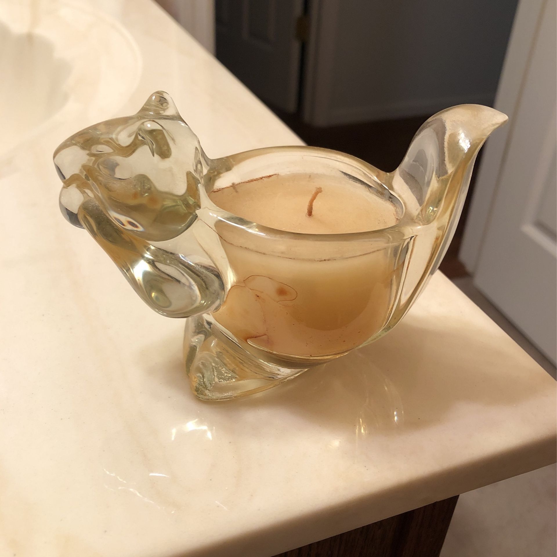 Vintage Avon candleholder. Has never been lit. Could also be used as a votive or tea lite candle holder, ring holder etc. once the wax is removed.