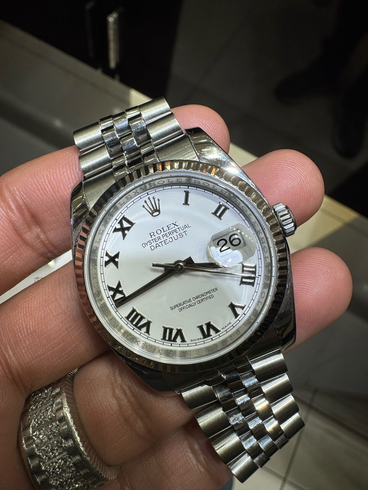Rolex Datejust 18k white gold fluted bezel Hidden clasp jubilee bracelet White Roman dial Financing is available Mint condition