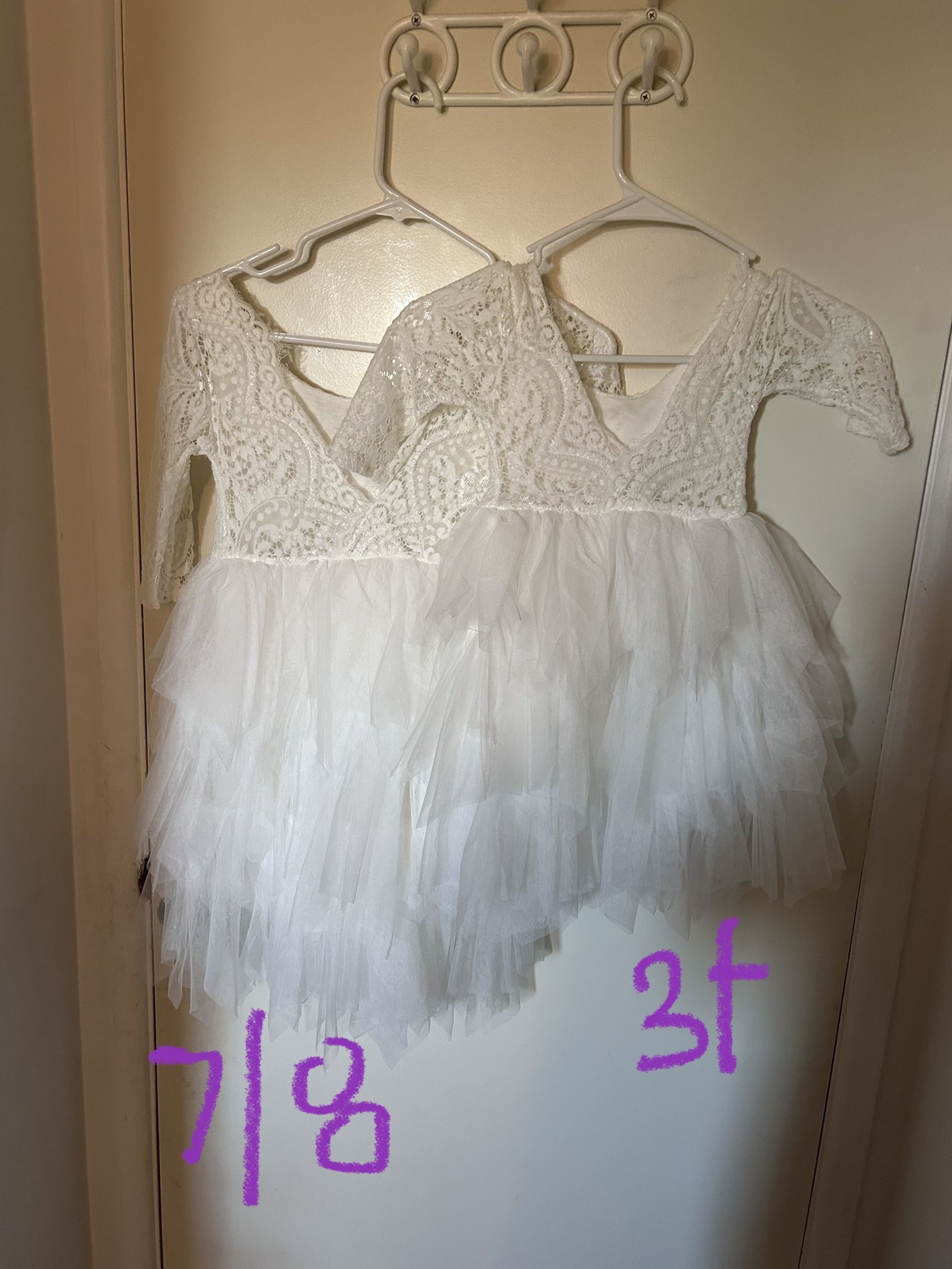 Bridal shower dress has corset top, it’s from Nordstrom 💕 only worn once. $30 obo Paid 120$ Flower girl dresses are size 7/8 & 3 T never worn, we chose different ones. Paid $50 Asking $20 for both!