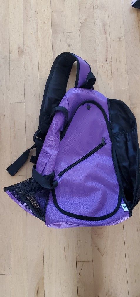 Never used crossbody backpack. Great for your yoga mat, water bottle, and cell phone. Lots of pockets and storage.