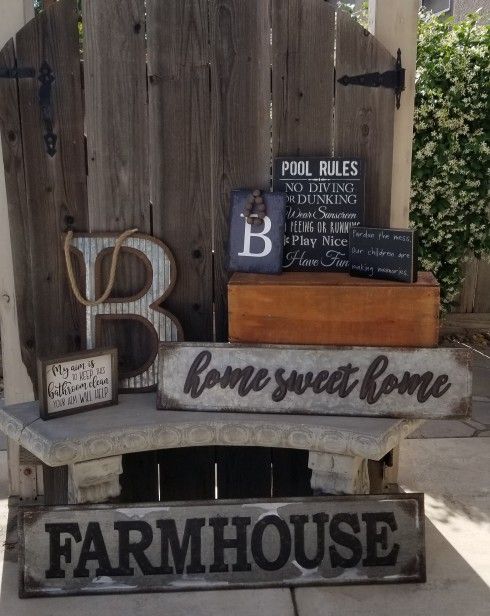 *Home Decor* *Farmhouse Sign 35$ *Home Sweet Home Sign 25$ *Galvanized & Wood "B" (For boys, bath, or first or last initial) 20$ *Pool Rules 15$ *My Aim Sign 12$ *Pardon the mess sign $10 *"B" w/beads (for boys, bath, or first or last initial) *Cash Accepted *Pick up in Manteca ONLY. No delivery, No shipping, No trades **Check my profile for other listings** **ONLY SERIOUSLY INTERESTED BUYERS PLEASE RESPOND TO POST. SOLD AS IS. ALL SALES FINAL. X-POSTS. Thank you for viewing my post & have a blessed day!π