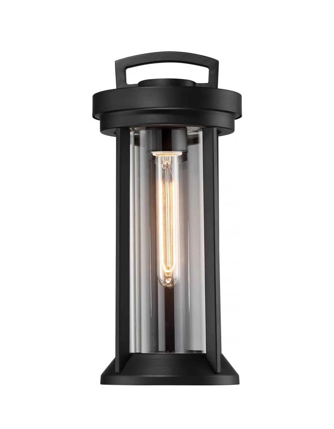 Uses one 60 watt vintage style incandescent medium base bulb, included Fixture measures 15.5 inch height, inch width, 8 inch extension and is comprised of steel and glass For outdoor use in wet locations with standard 120 voltage Applications suitable for home exterior Easy to install with included instructions and mounting hardware Dust lightly with a soft cloth for easy cleaning