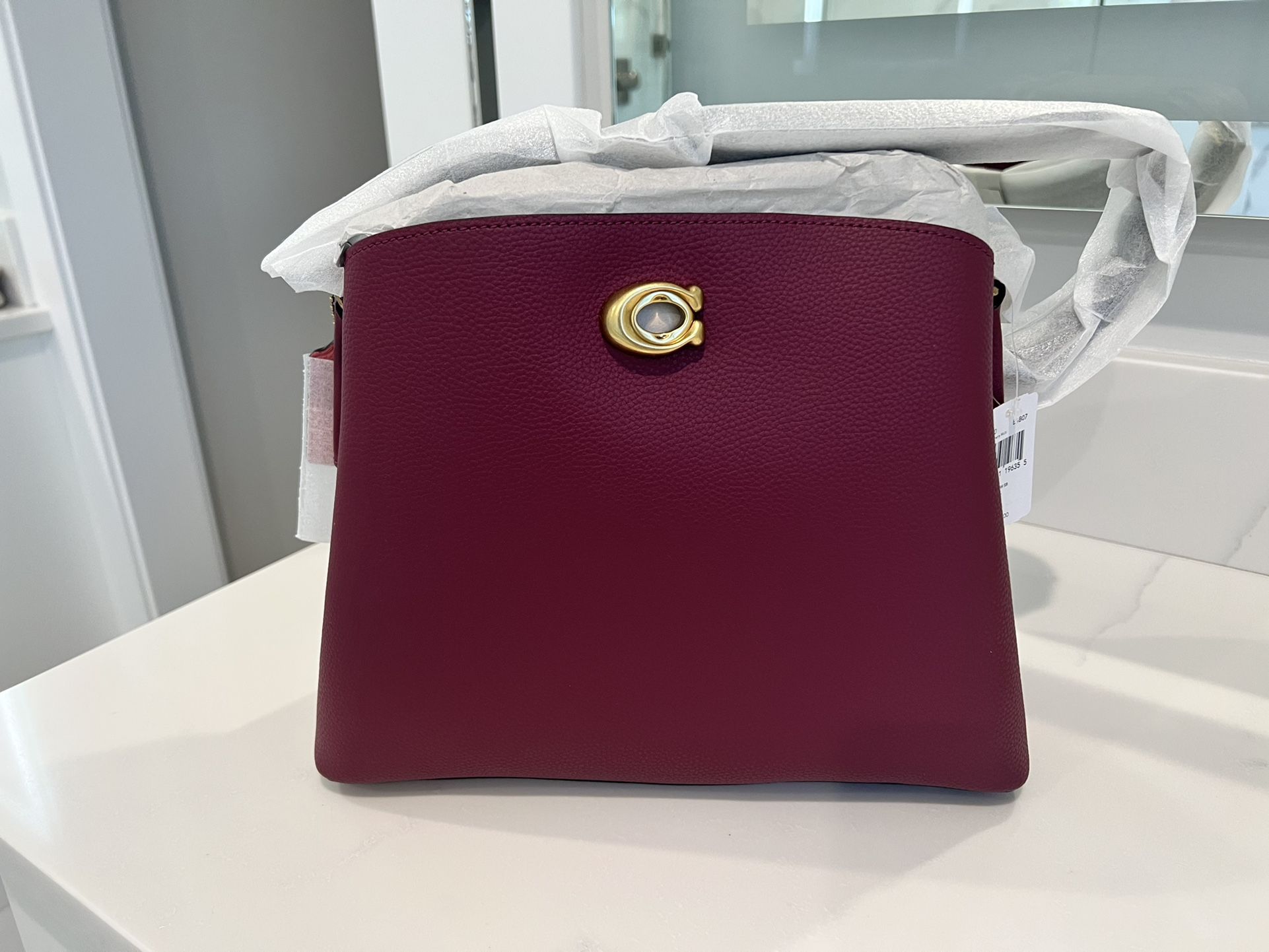 Brand new Coach Purse/ Handbag/ Bag + Willow Floral Flower Bag Charm Hangtag BUNDLE Color: Black Cherry Multi Willow Floral Flower Bag Charm Hangtag Get prepared for a weekend vacation getaway with the COACH™ Color-Block Leather Willow Shoulder Bag. This pebble leather bag is crafted with a removable crossbody strap, brass hardware and turnlock closure, one zippered compartment at center interior, two open compartments and a smaller pocket to store all of your essentials while keeping you looking stylish. Can be worn as a shoulder bag or a crossbody bag. 100% leather. Imported. Measurements: Bottom Width: 16 in Depth: 4 in Height: 10 in Strap Length: 49 in Strap Drop: 23 in Handle Length: 23 in Handle Drop: 8 in Weight: 1 lb 14 oz