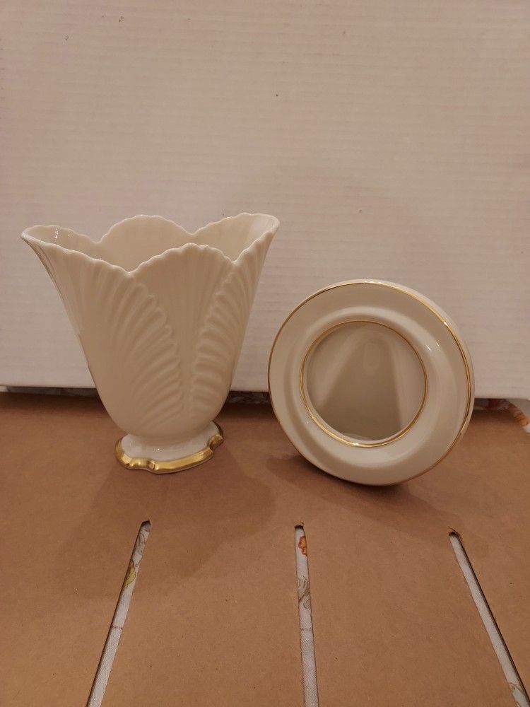 Selling these two beautiful Lenox pieces. Both are cream with gold trim. The vase flairs out like a flower and the frame is round. Both in very good condition and have been stored unused for years in a China cabinet. Made in USA. They match. Would make a lovely gift for someone. Asking $17 for the vase and $10 for the frame or both for $22. Selling lots, see profile.