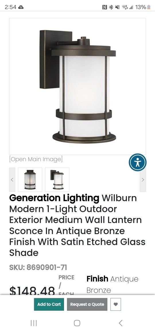 Generation Lighting Wilburn Modern 1-Light Outdoor Exterior Medium Wall Lantern Sconce In Antique Bronze Finish With Satin Etched Glass Shade
