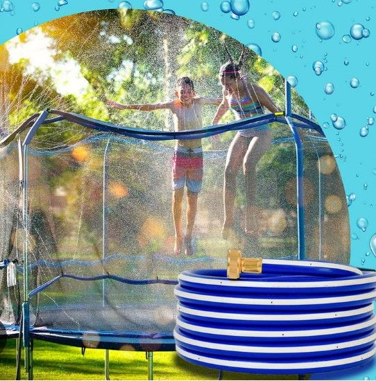 Trampoline water wall. Soaker/sprinkler hose. These are shorter 6ft ones that attach to the netting vertically top to bottom. Or along a shorter horizontal section. Includes zip ties with protective sleeves for the zip ties. They have solid capped ends that can not be connected together to make longer. Also can be used along the side of a slip and slide, or used with other water toys. Can be placed across a yard to run through. Or other possibilities. New. $5 Below average going rates