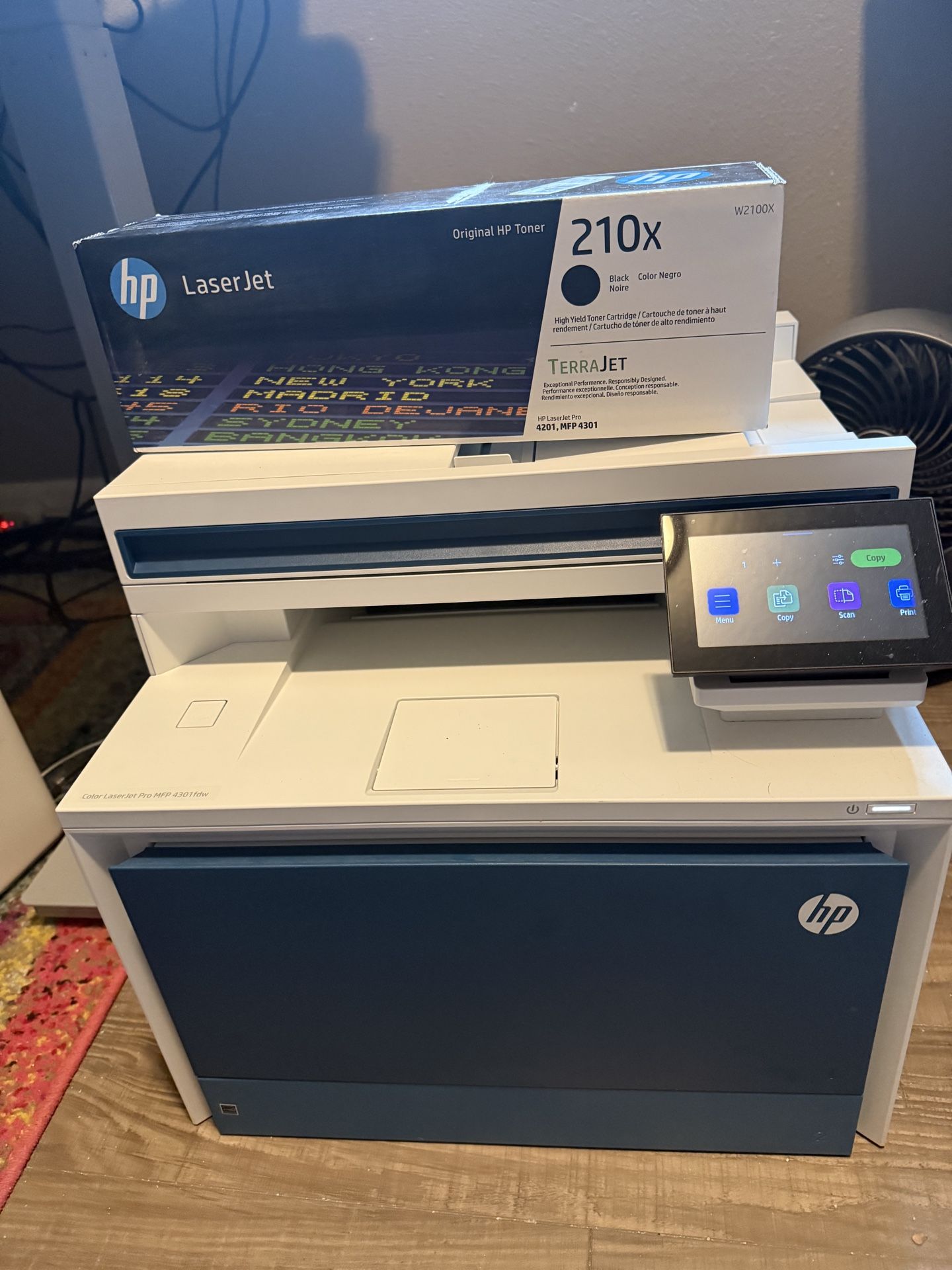 HP Color Laser printer with extra large capacity black toner and 6 reams of paper available. Printer gently used, purchased October 2024. Asking $400 the replacement toner is $220 on its own. Or make me an offer I can’t refuse. Pick up in St. John’s north Portland.
