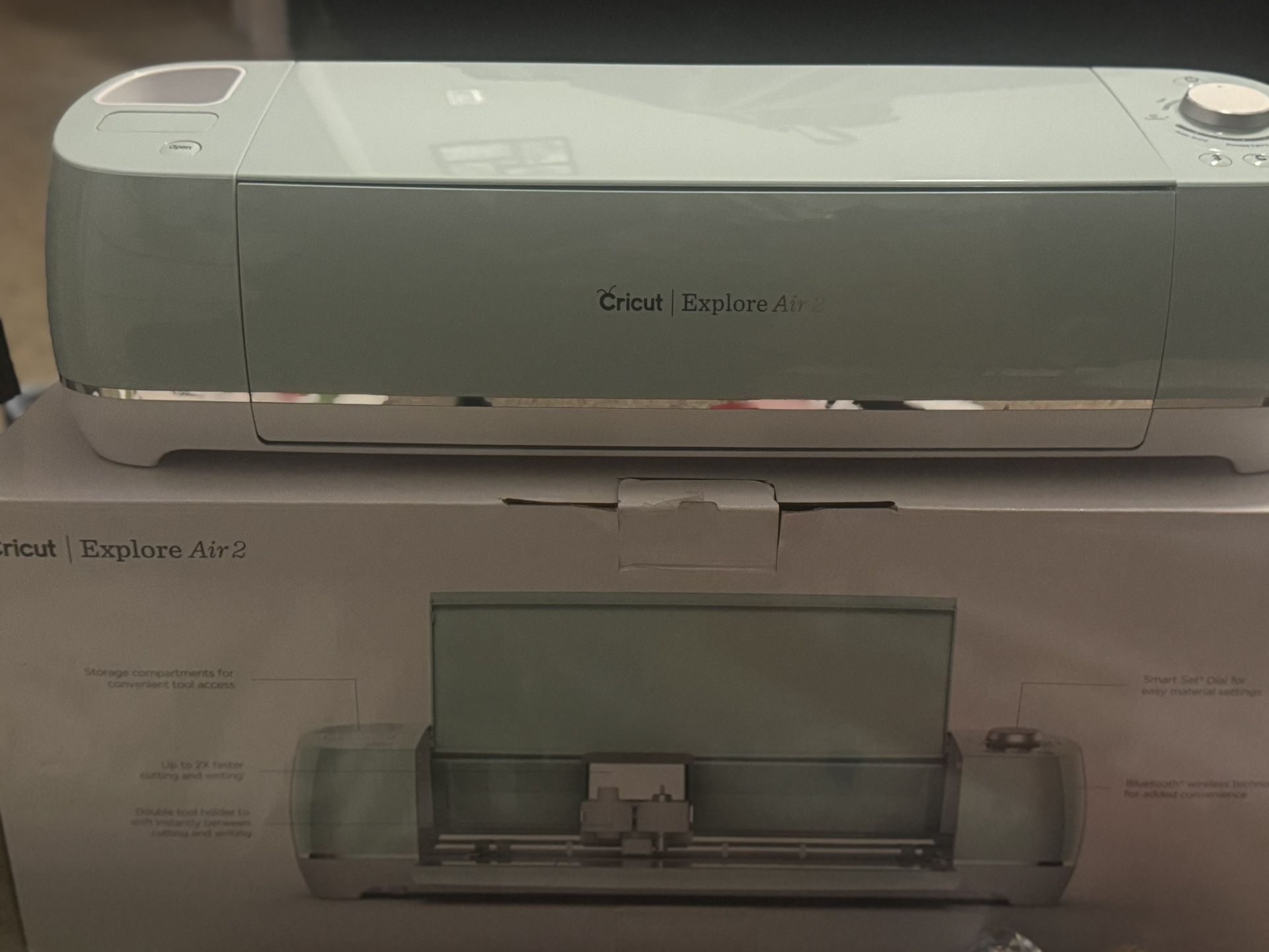 Selling my cricut explore air 2 in the original box. Comes with machine, power cords, 2 - 12inx24in mats, tools, rolls of vinyl/transfer tape, how to use guide and instruction manual. Firm on price as I’m including extras.