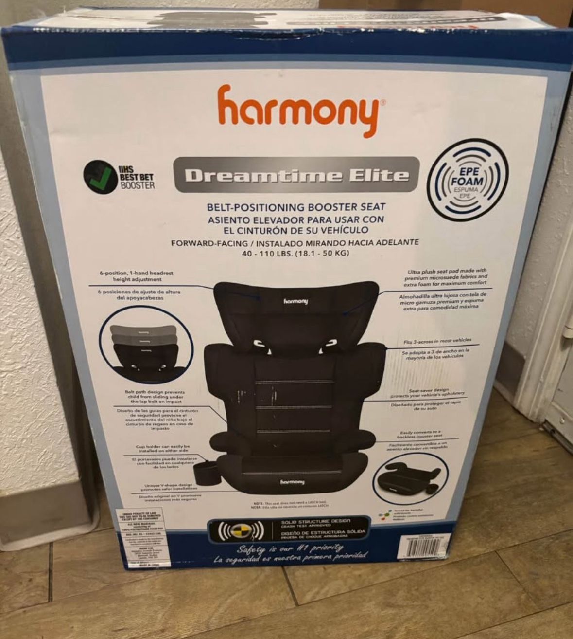 New in box Harmony Dreamtime elite long back booster seat expires in 2033